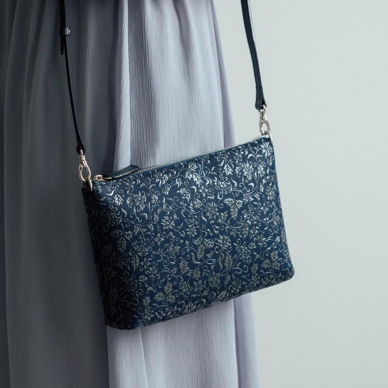 肩紐やハンドルにもデザインと調和する同色の牛革を採用しています。