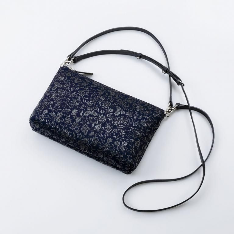 - 口前はファスナー式/ショルダー紐と手紐は取り外し可能