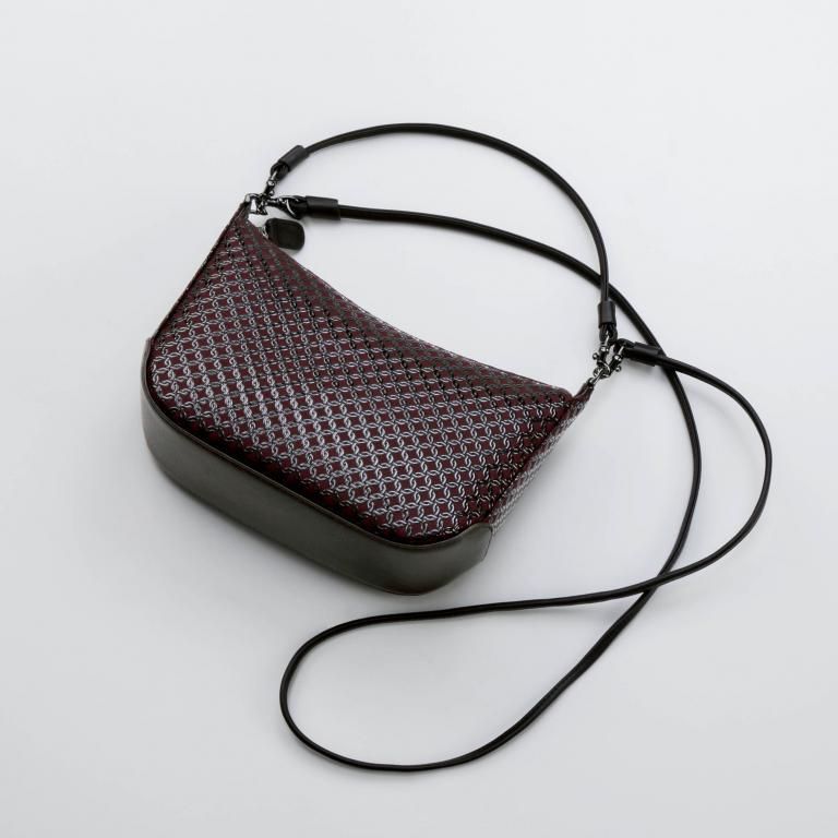 大きい印伝革を贅沢に使い、縫製で立体的なデザインに仕上げています。
