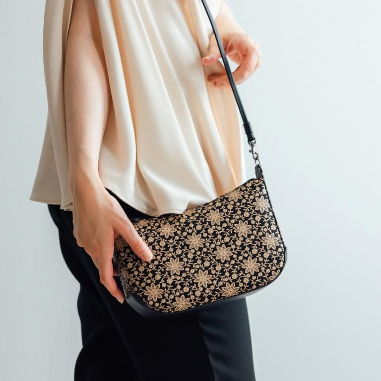 肩紐は、コーディネートに調和しやすい細めの牛革を使用しています。