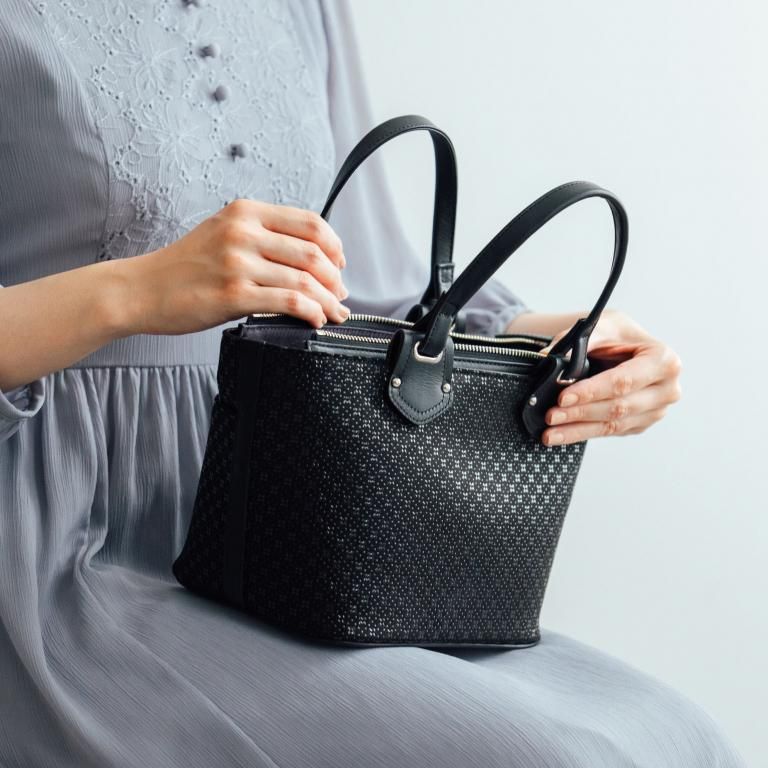 お出かけフィットするシンプルデザインのハンドバッグ。
