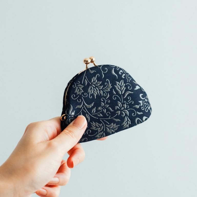 手のひらの収まりがよいがま口タイプの小銭入です。クラシカルなデザインに、ゴールドの金具が上品な印象を演出します。