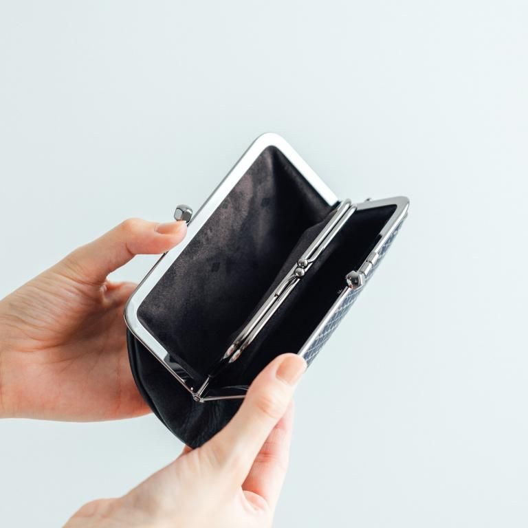 内側のがま口には小銭を、サイドに三つ折りにしたお札や数枚のカードを入れることができます。