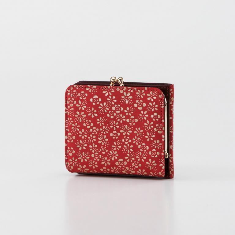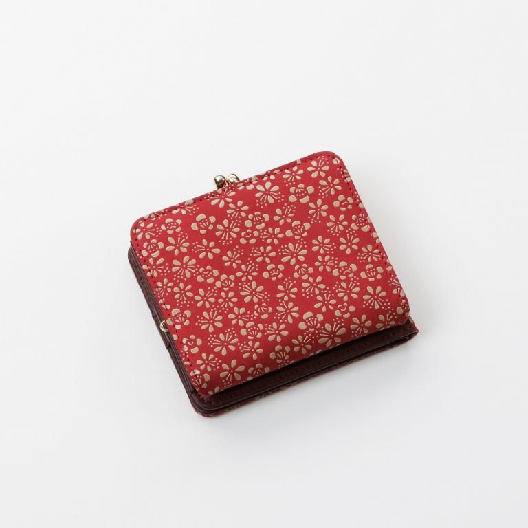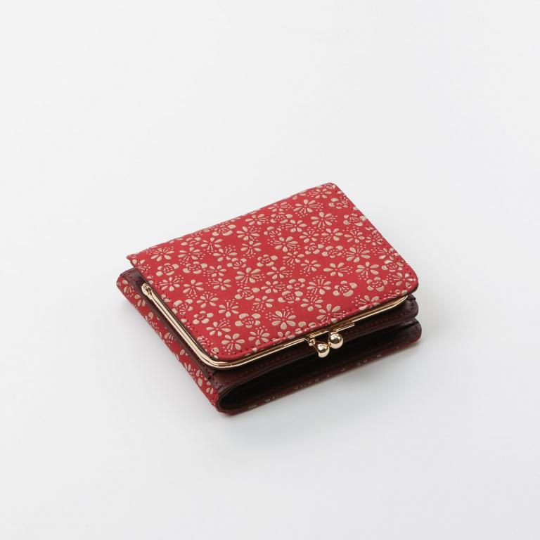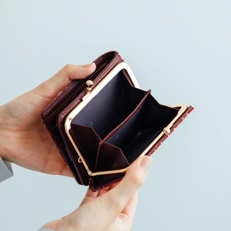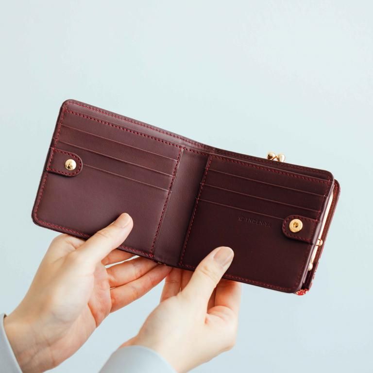 レトロで丸みのある口金が特徴的な二つ折りのがま口財布。