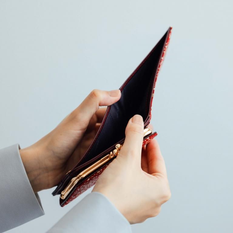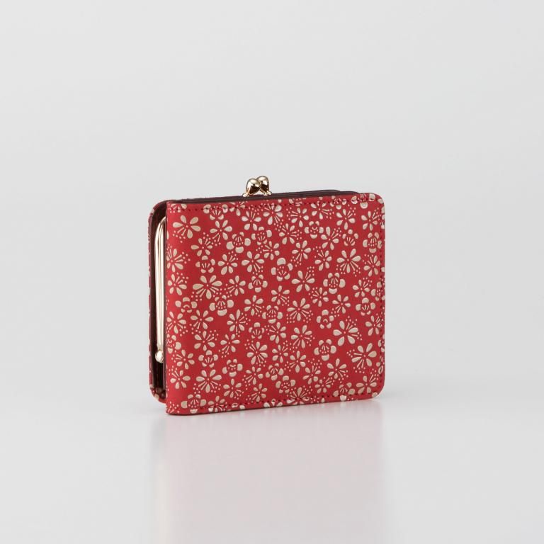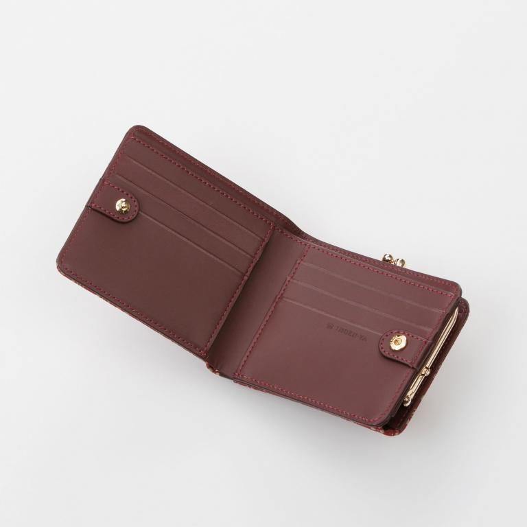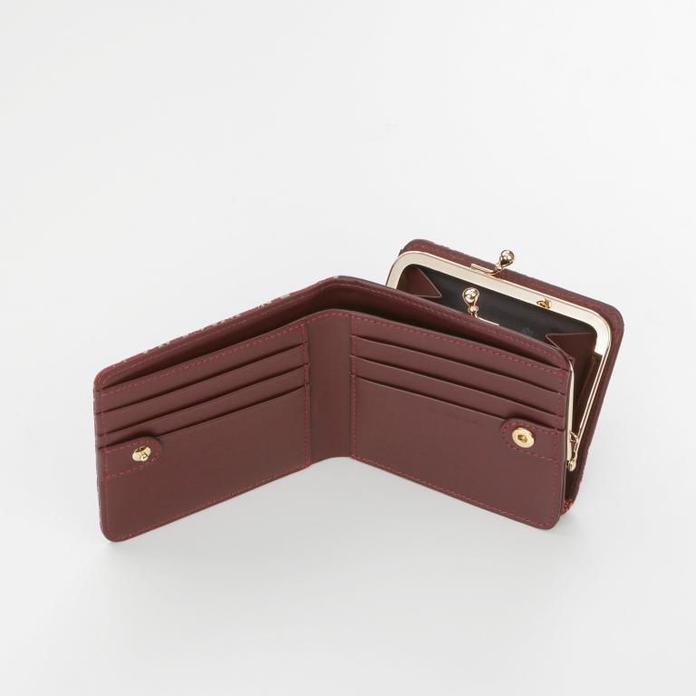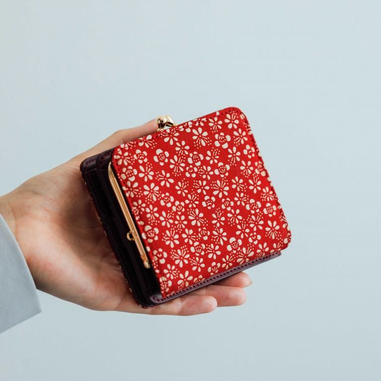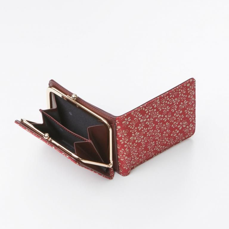 レトロで丸みのある口金が特徴的な二つ折りのがま口財布。
