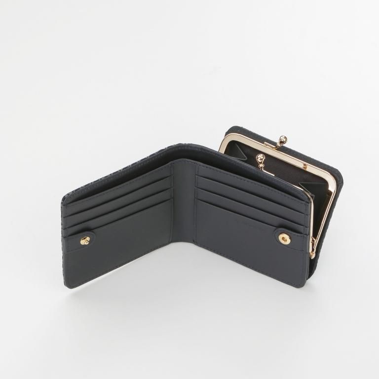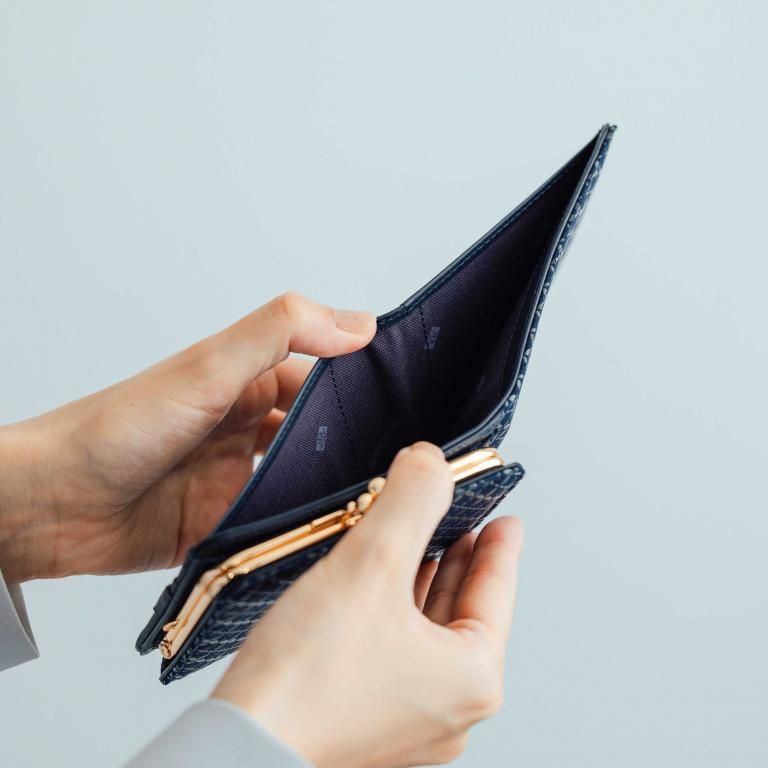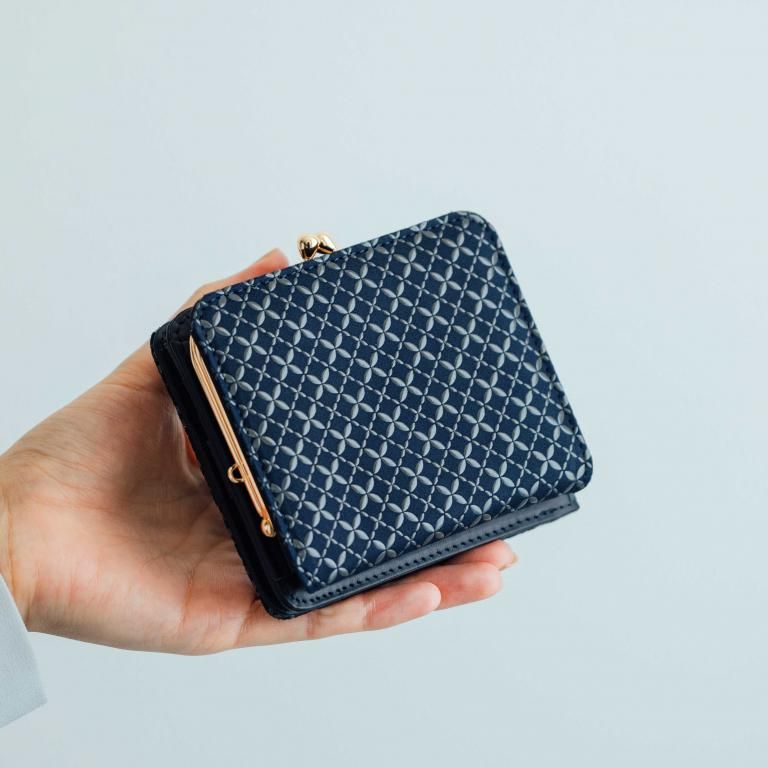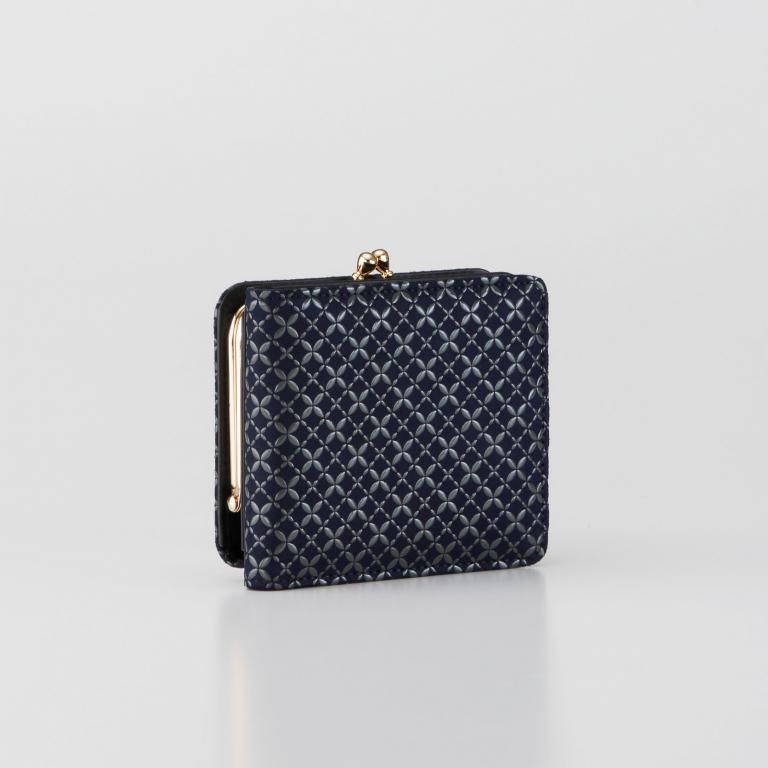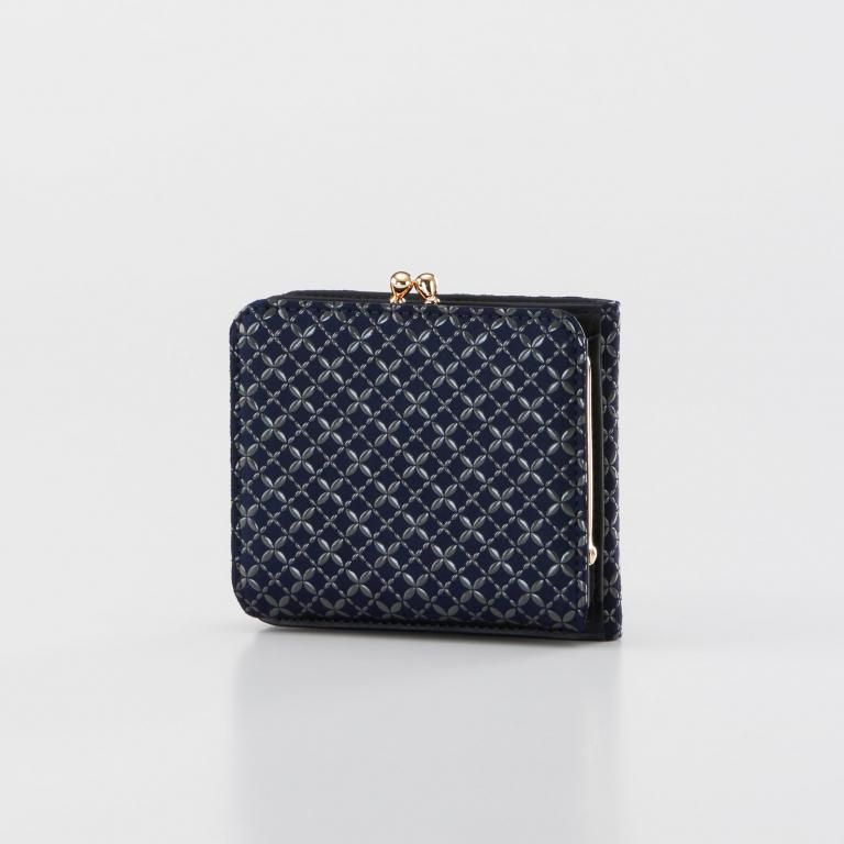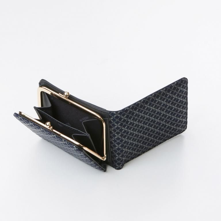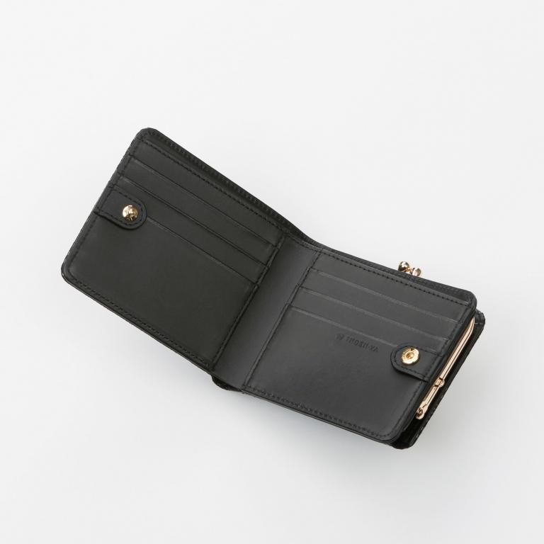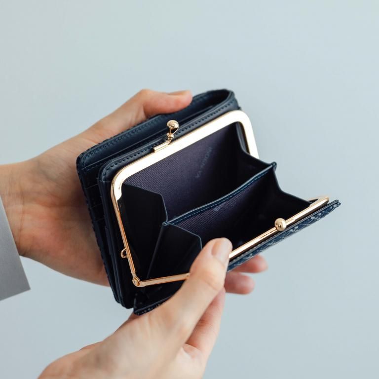 レトロで丸みのある口金が特徴的な二つ折りのがま口財布。