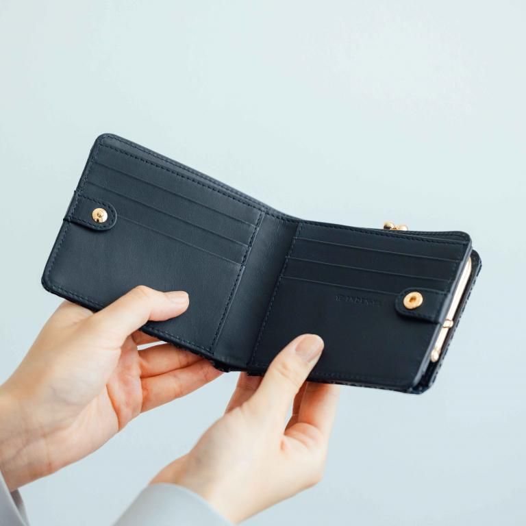 また、コンパクトで実用的なのも人気の理由。パチッとワンタッチで大きく開く小銭入は、中身を確認しやすく、スムーズに取り出せます。