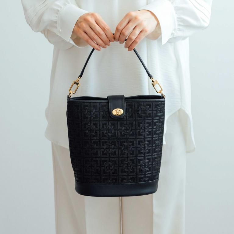 上品でトレンドに左右されないデザインと機能性を両立させた、持ち歩きやすいバケツ型2wayバッグ。