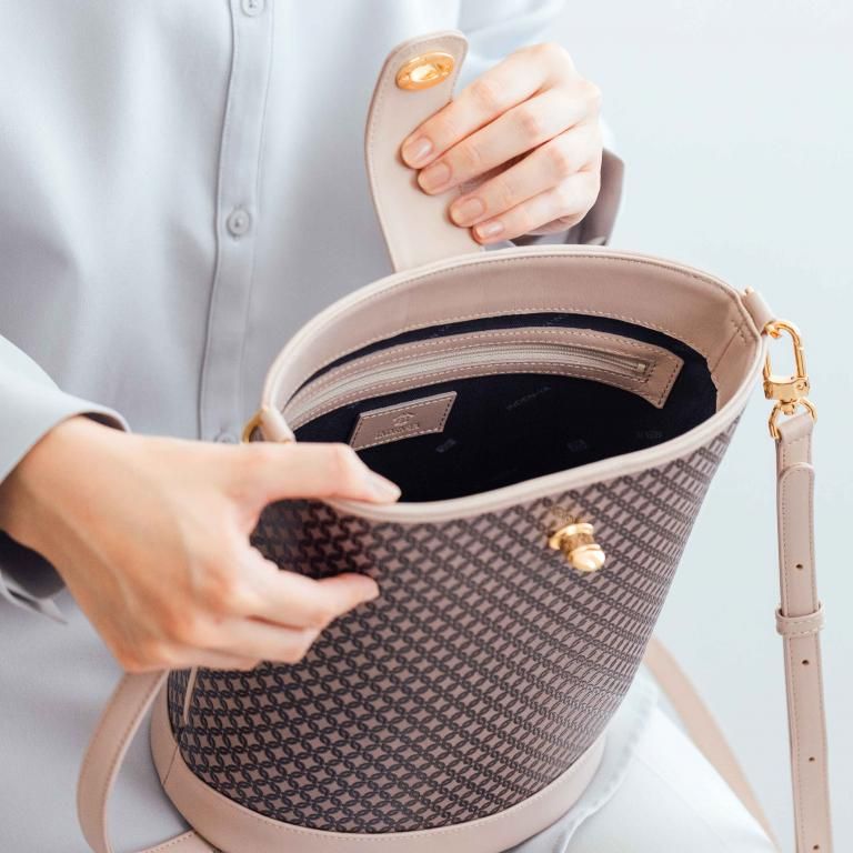 上品でトレンドに左右されないデザインと機能性を両立させた、持ち歩きやすいバケツ型2wayバッグ。