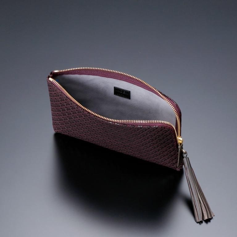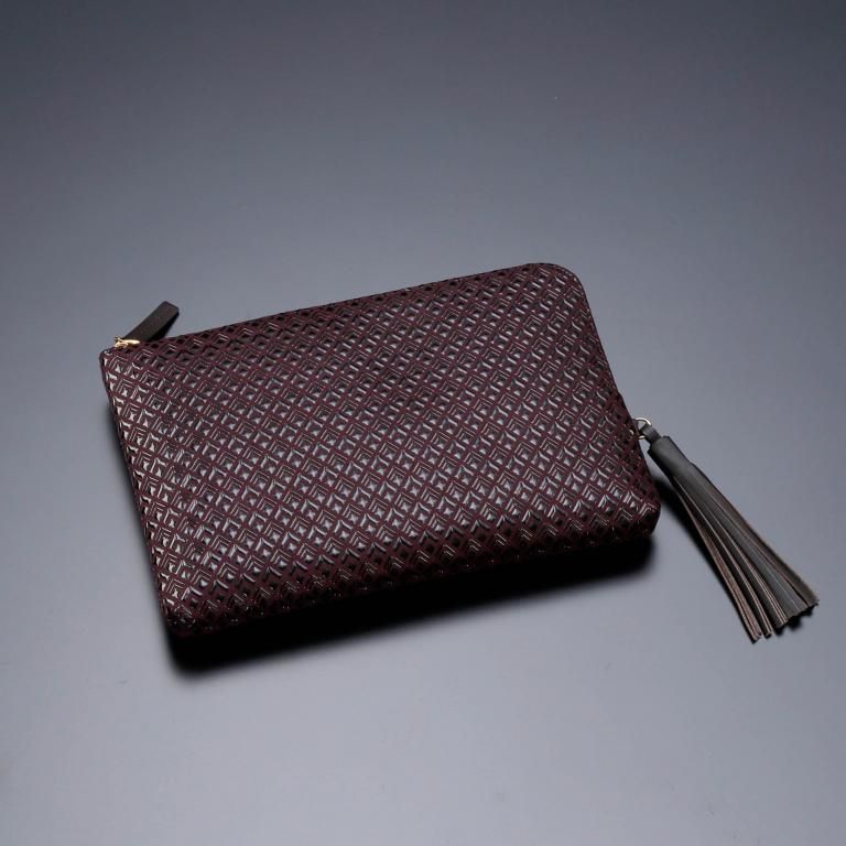 大きなタッセルがアクセント。内側には、手触りの良いスエード調のなめらかな裏地を使用し、デザインをより上質に演出します。