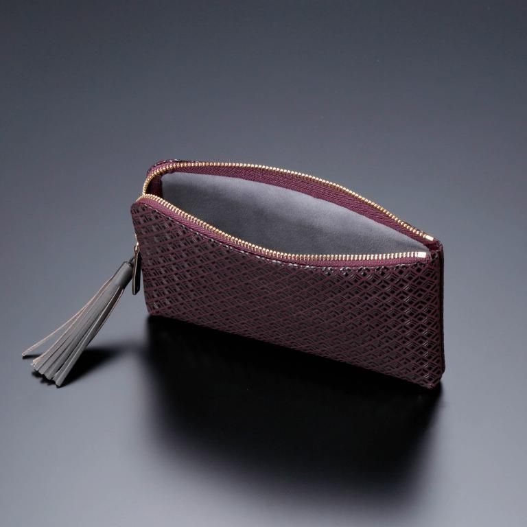 印傳ならではの艶やかな光沢と鹿革の質感を全面に活かした作りで、使うほどに風合いをお愉しみいただけます。