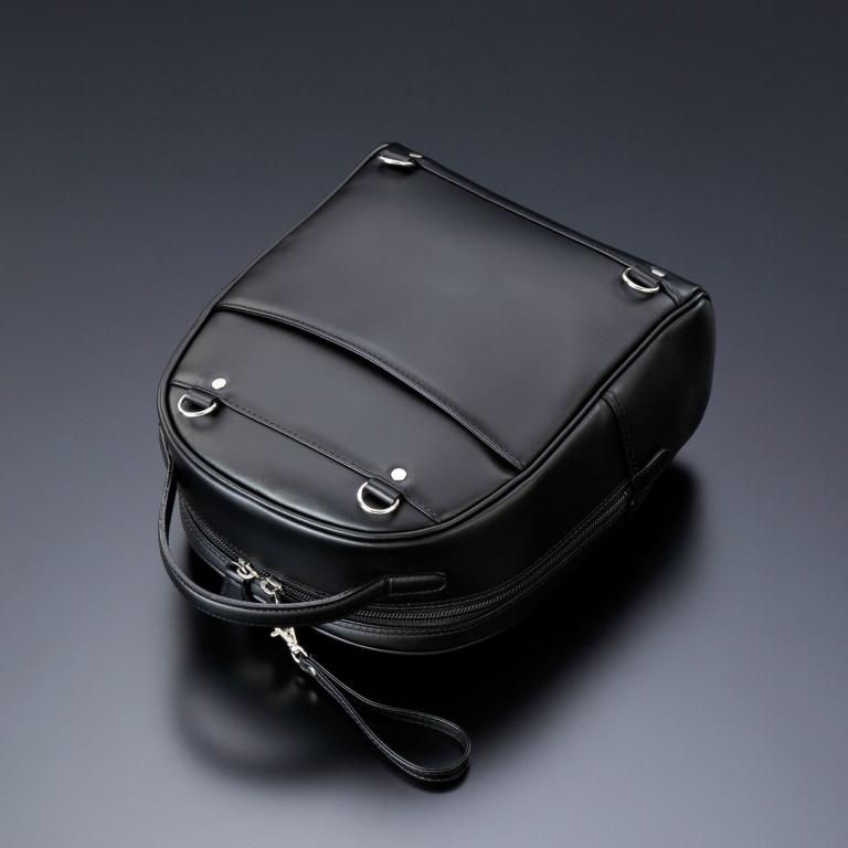 - 口前はファスナー式/前胴にファスナー式ポケット×1/背胴にオープンポケット×1/ショルダー紐は取り外し可能/持ち手付き