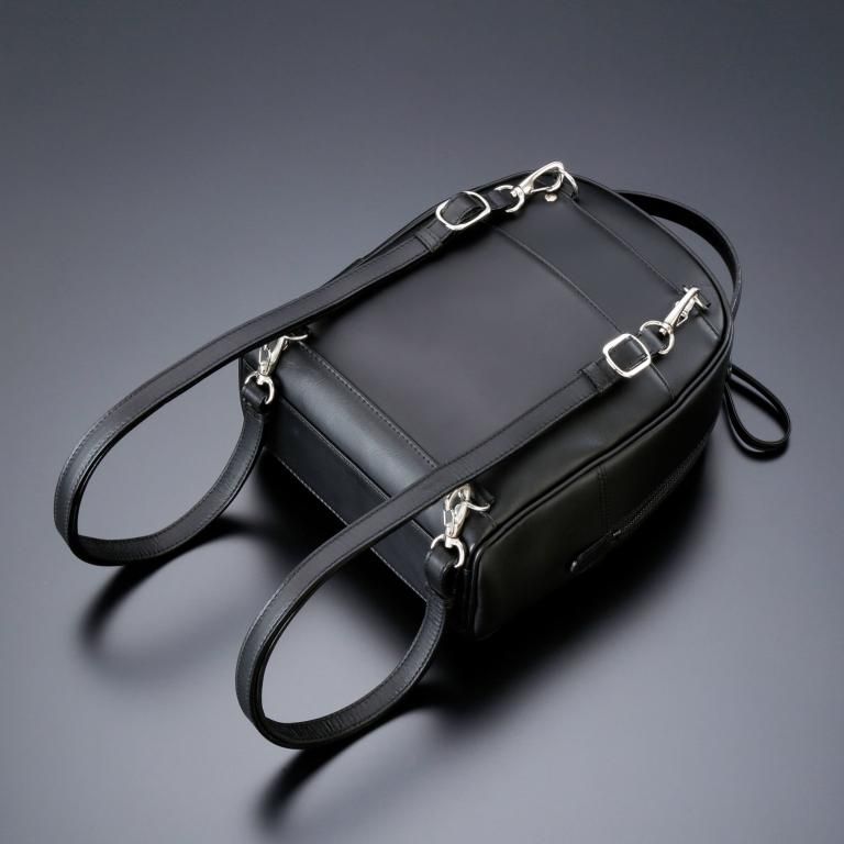 トップハンドルはデザインアクセントだけでなく、しっかりと手にフィットする牛革製。