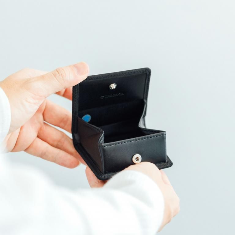 手に収まりのよい絶妙なサイズのボックス型小銭入です。ホックを開くと、真上から中身が確認しやすく、取り出しやすさも抜群です。