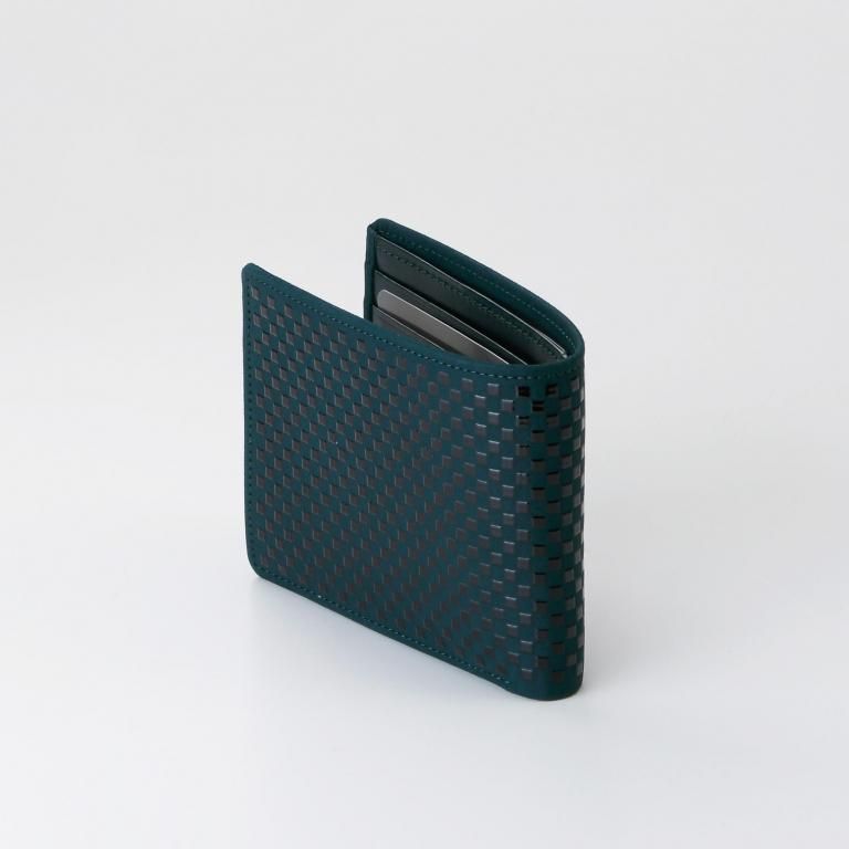 ジャケットやスーツなどのポケットに収められる二つ折りタイプのお財布。