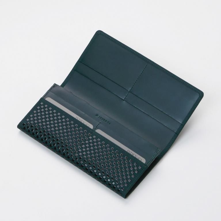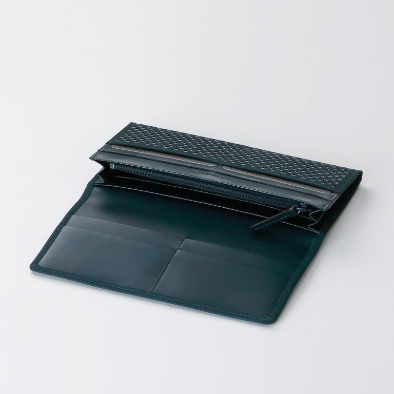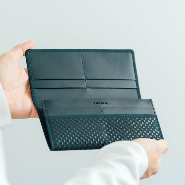 印伝革ならではの手触りと、艶やかな漆模様を贅沢に愉しめるようにデザインしたメンズに人気の長財布。