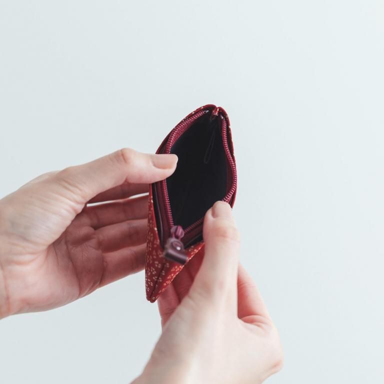 手のひらに、ポケットに、コンパクトに収まるファスナー式小銭入です。