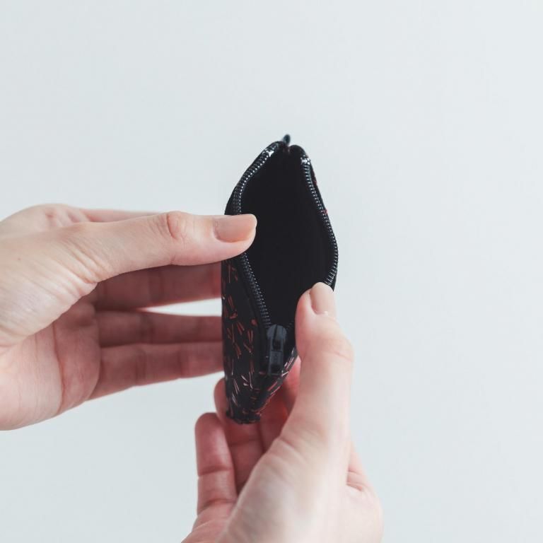ファスナーを開き、少々の小銭を納める。そんなシンプルな仕様ながら、印伝ならではの鹿革と漆の風合いをしっかりと手のひらでお愉しみいただけます。