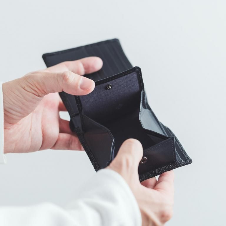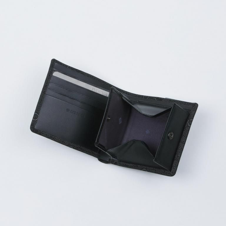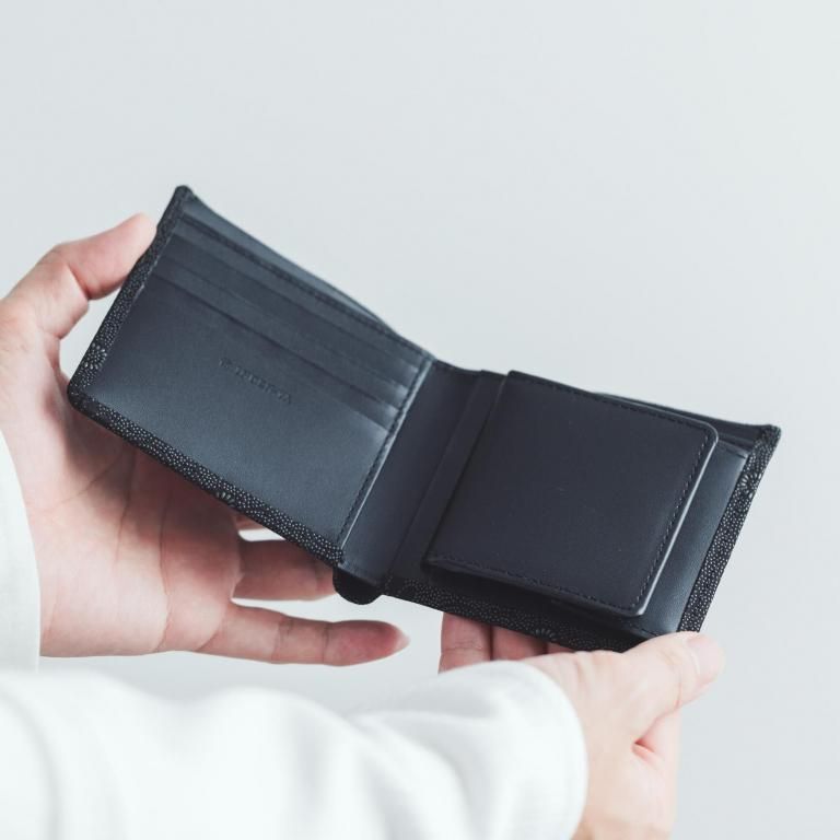 ジャケットやスーツなどのポケットにもスマートに収められる二つ折りタイプのお財布です。