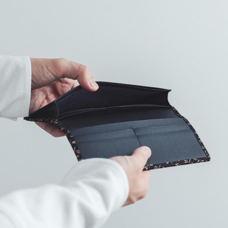 お札を折らずに束ねて美しく収納できる「束入」の代表的なスタイル。マチ幅を活かしたお札の収納量の大きさが特徴。