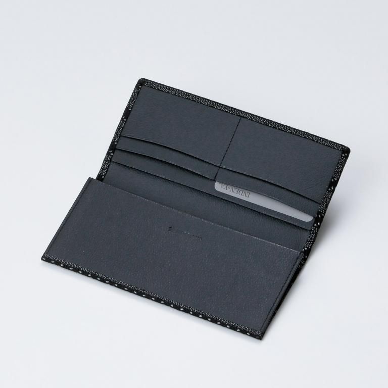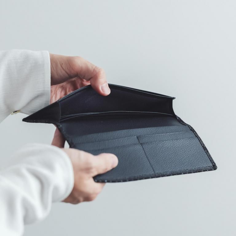 お札を折らずに束ねて美しく収納できる「束入」の代表的なスタイル。マチ幅を活かしたお札の収納量の大きさが特徴。