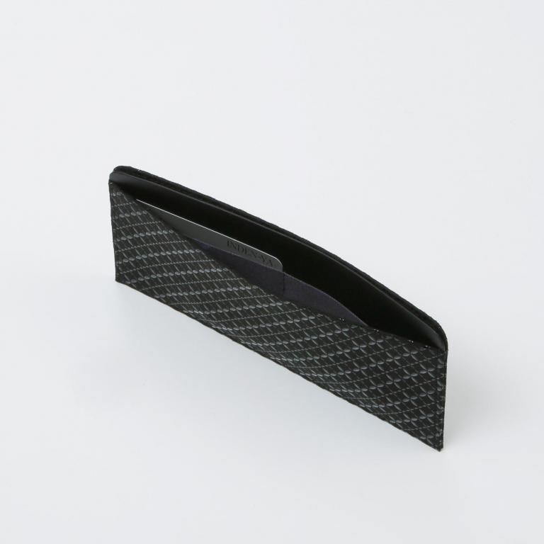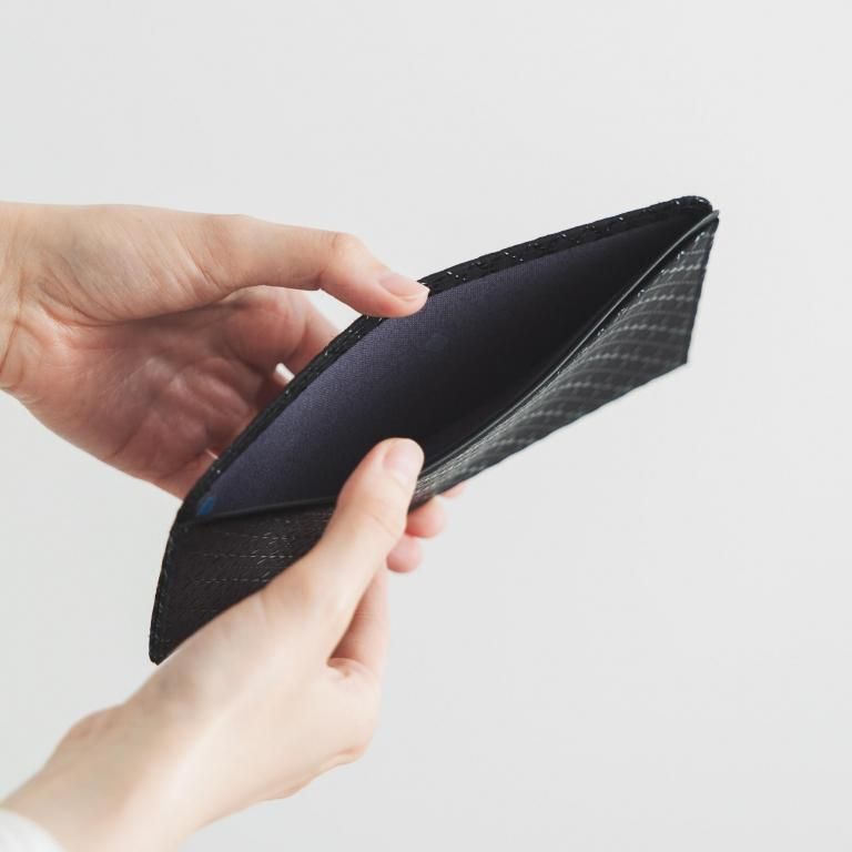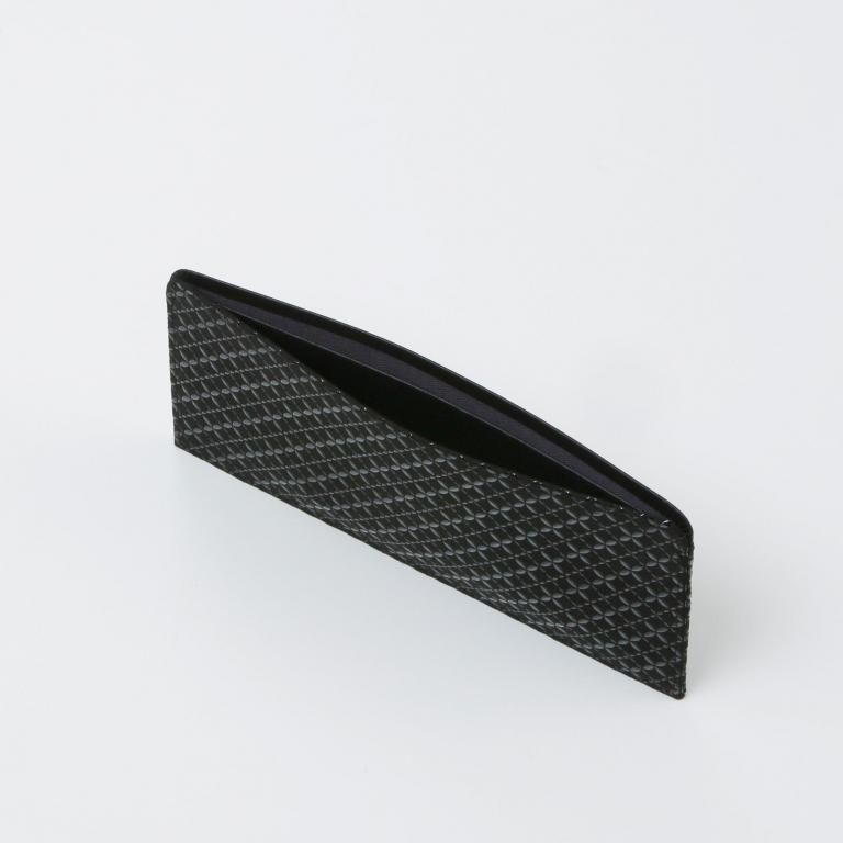 ジャケットの胸ポケットに入れても気にならないほどの薄さと、鹿革の柔らかさを活かした仕様。