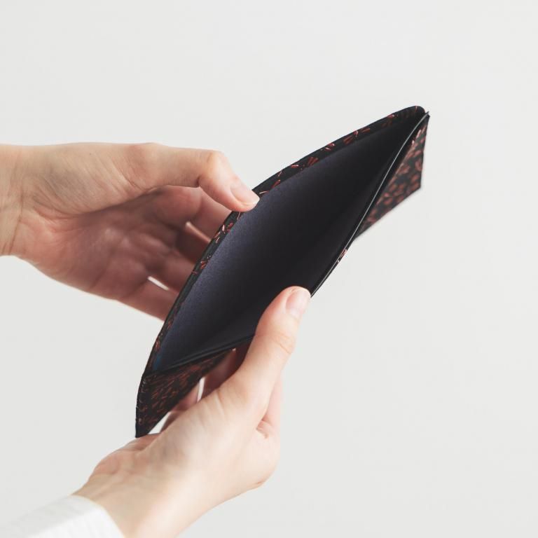 ジャケットの胸ポケットに入れても気にならないほどの薄さと、鹿革の柔らかさを活かした仕様。