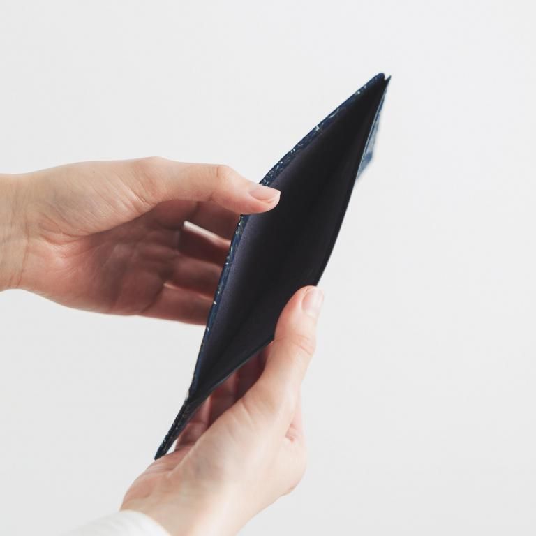 ジャケットの胸ポケットに入れても気にならないほどの薄さと、鹿革の柔らかさを活かした仕様。