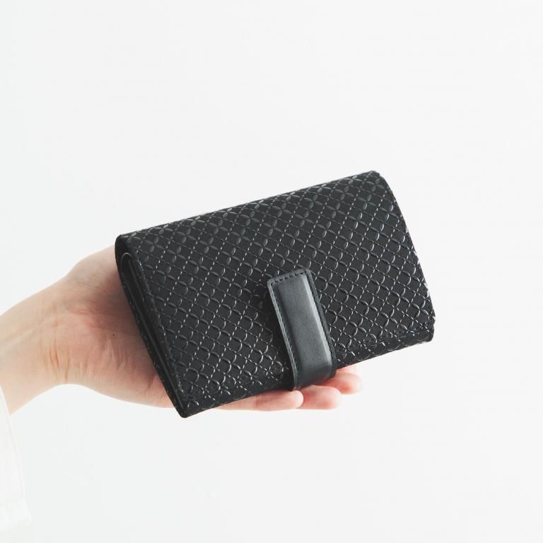 お財布を閉じるストラップは2段式ホックのため、中身が増えてもしっかり留めることができます。