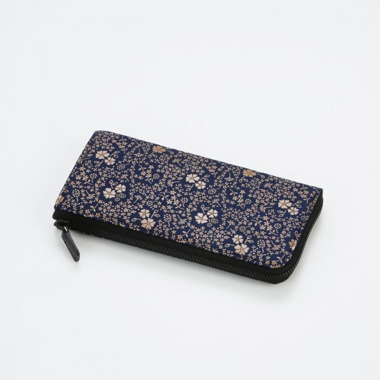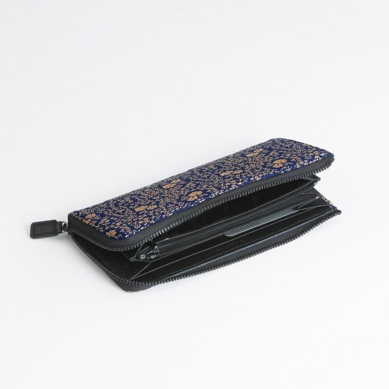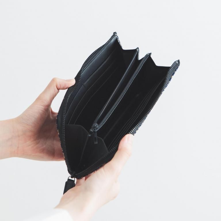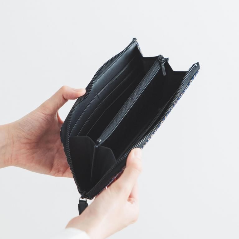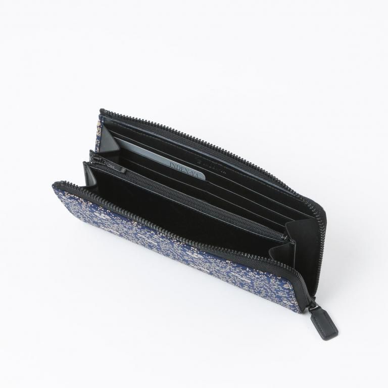 漆模様の艶やかな光沢と、印伝ならではの柔らかな風合いを生かしたL字ファスナー式の長財布。