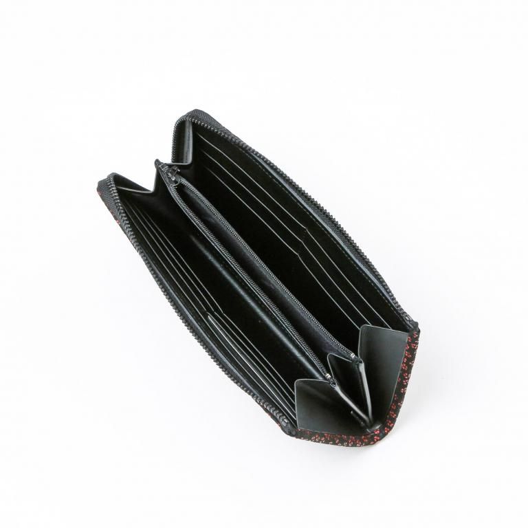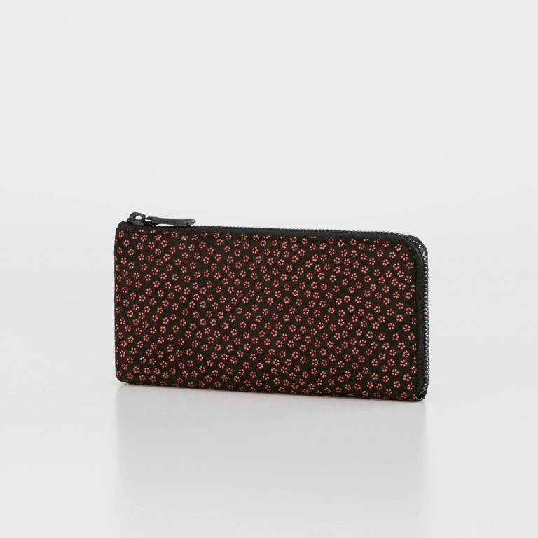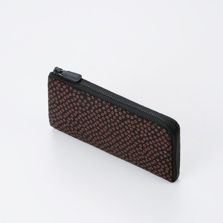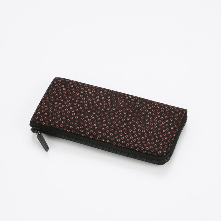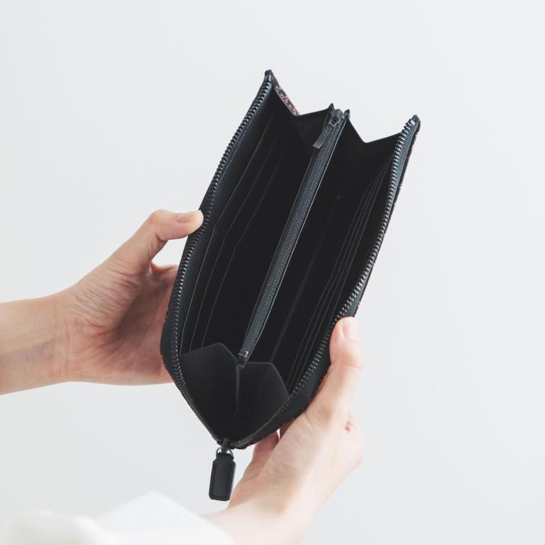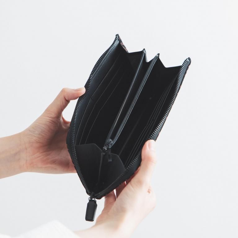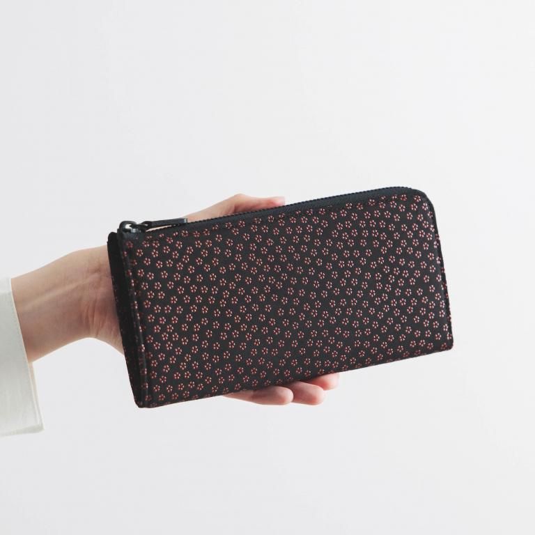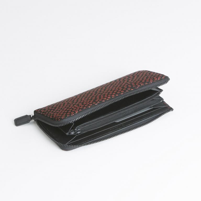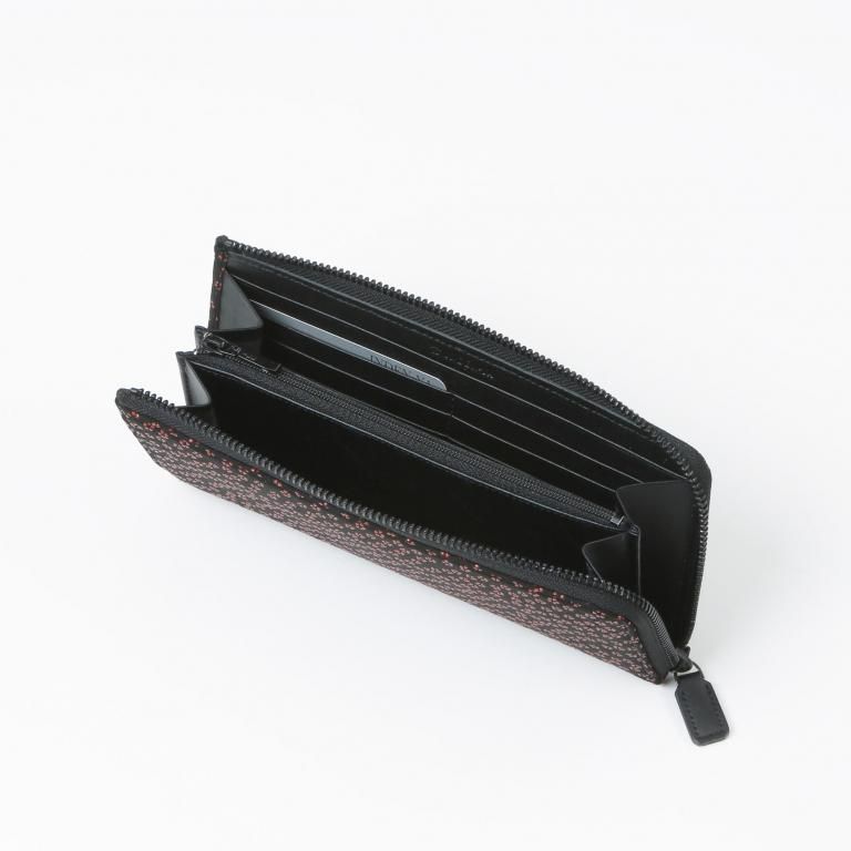 漆模様の艶やかな光沢と、印伝ならではの柔らかな風合いを生かしたL字ファスナー式の長財布。
