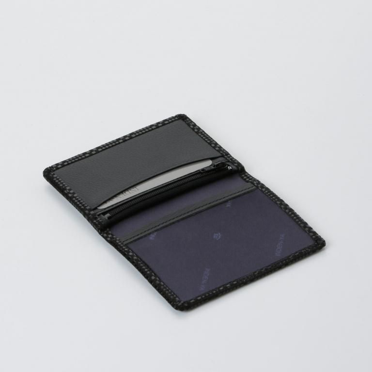 内側にクリアポケットとファスナー付きのポケット、カードポケット2つを備える免許証入です。