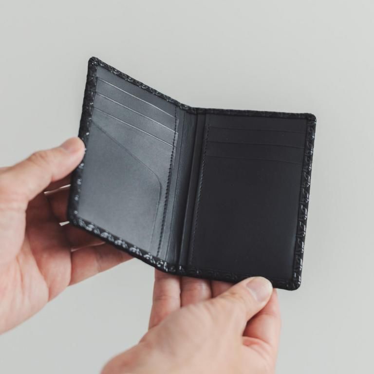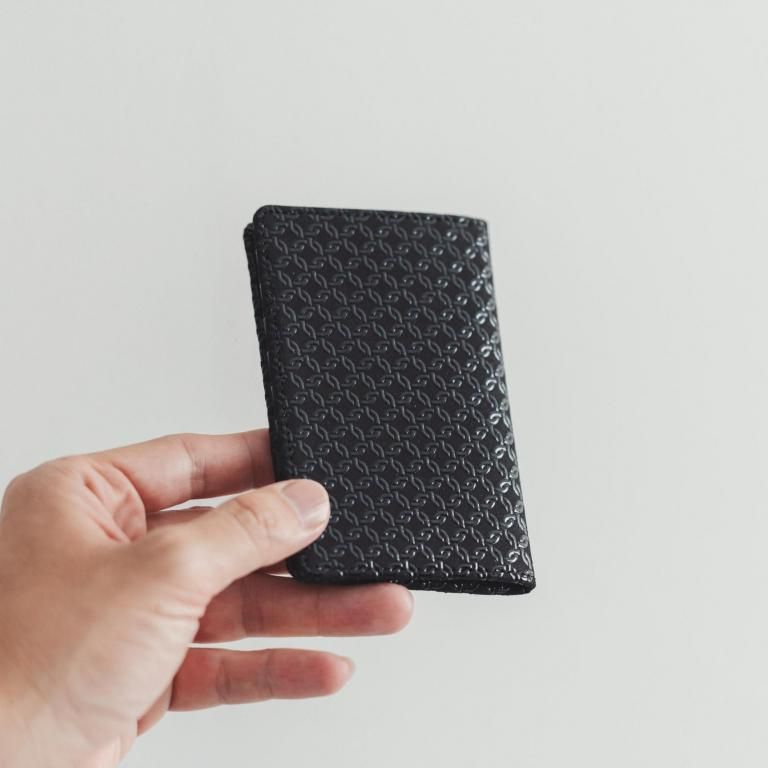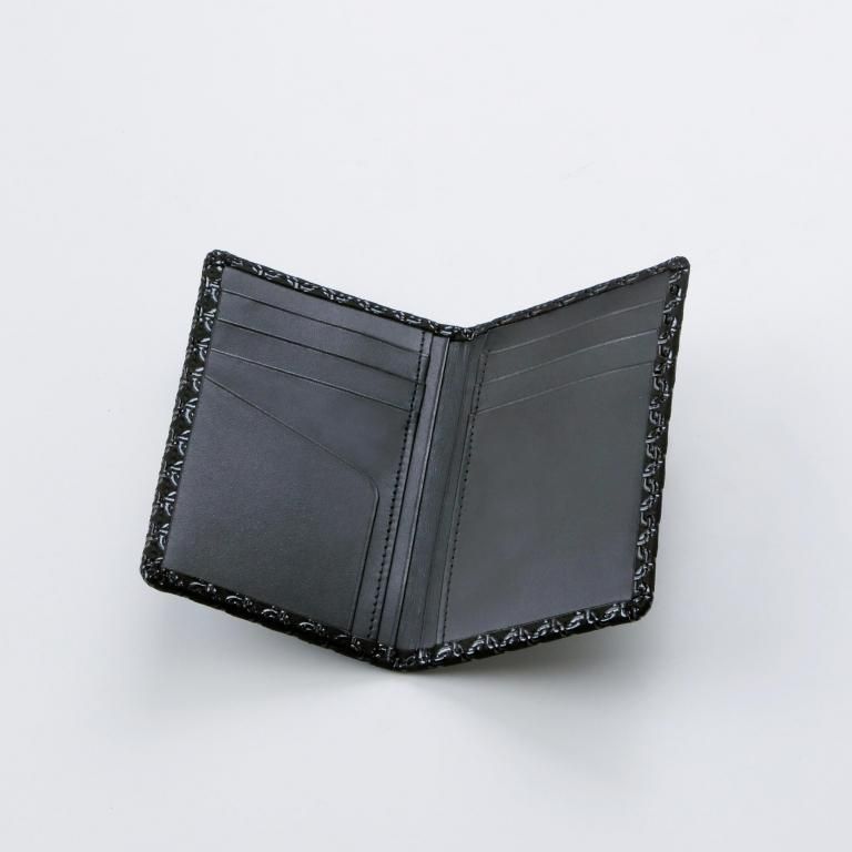 上漆模様の艶やかな光沢と、印伝ならではの柔らかな風合いを活かしたカードケース。