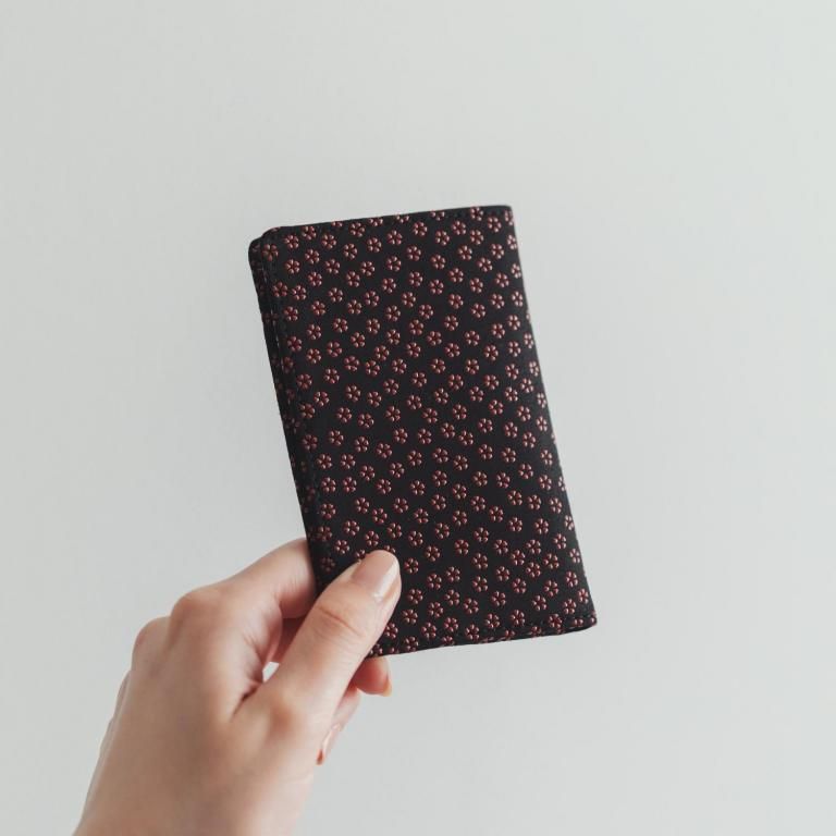 上漆模様の艶やかな光沢と、印伝ならではの柔らかな風合いを活かしたカードケース。