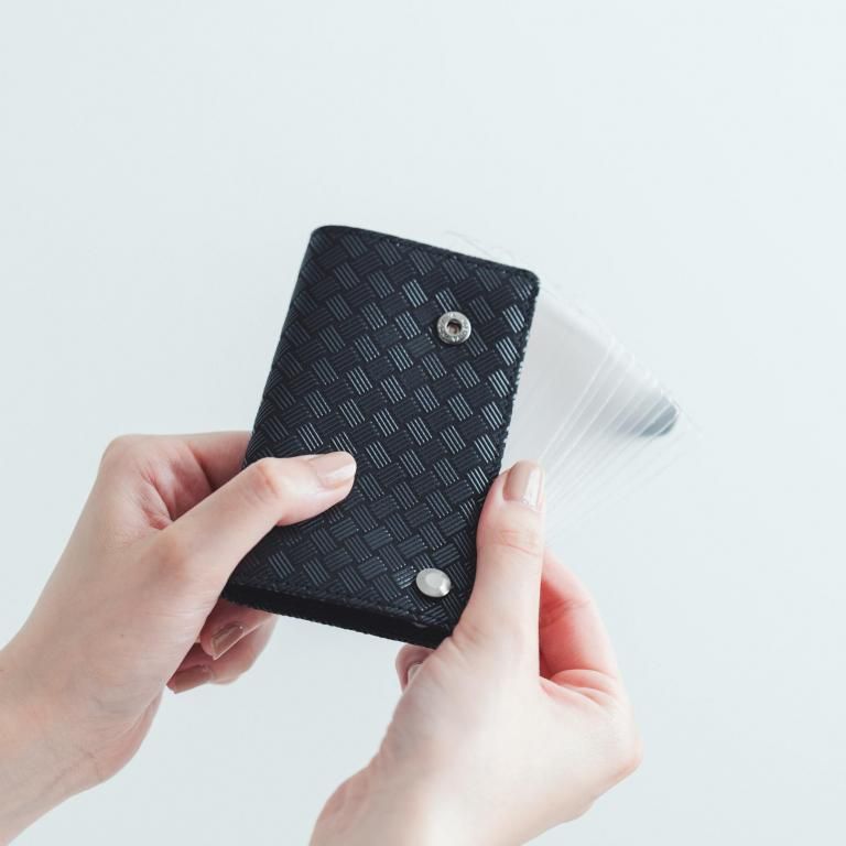 クリアポケットは角で留められており、中身を見ながらスライドさせて1枚1枚を確認しやすい仕様です。