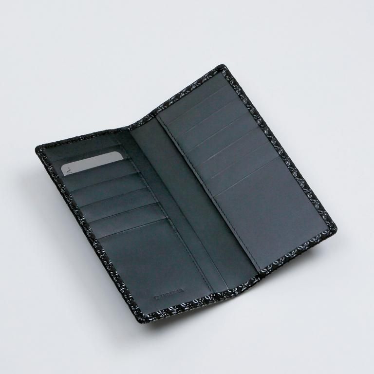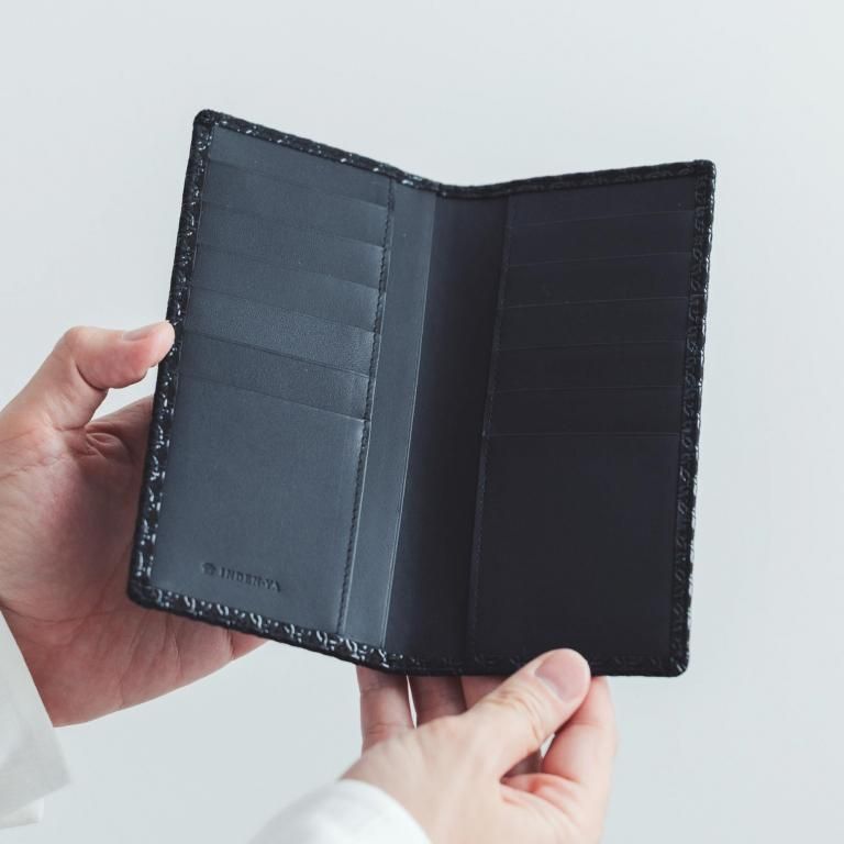 上漆模様の艶やかな光沢と、印伝ならではの柔らかな風合いを活かしたカードケース。