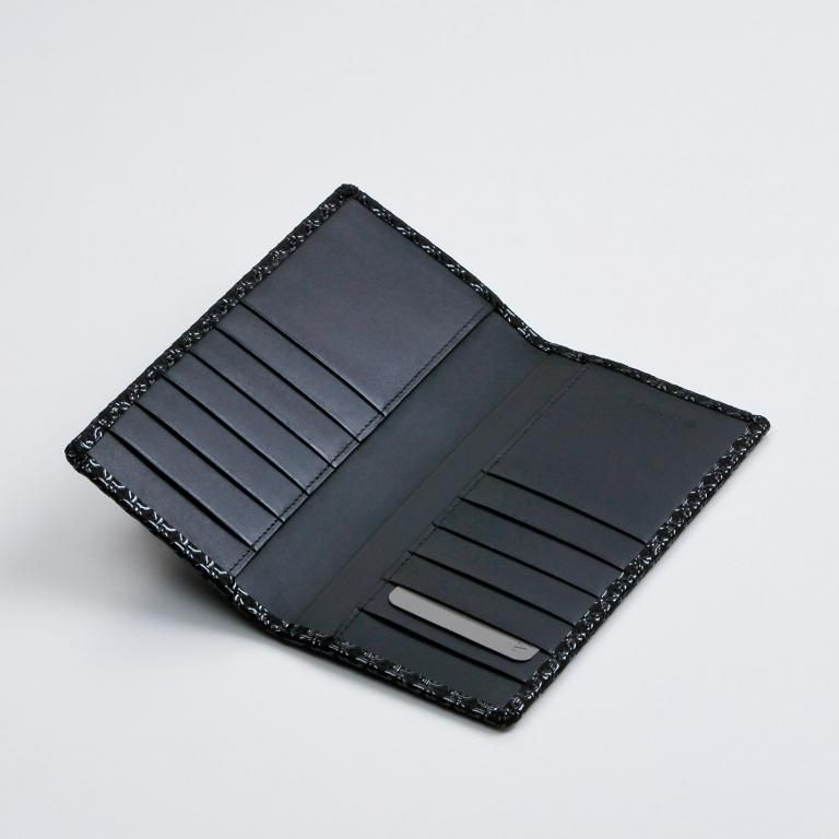 12のカードポケットをそなえた大容量モデルです。お札サイズであれば挟むことができる大きめのポケットも特徴。