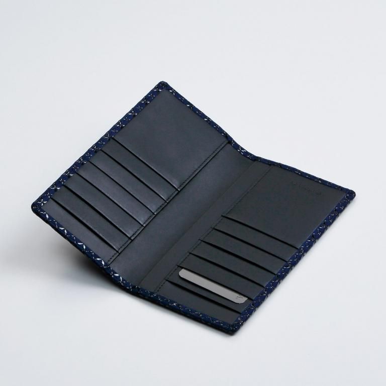 12のカードポケットをそなえた大容量モデルです。お札サイズであれば挟むことができる大きめのポケットも特徴。