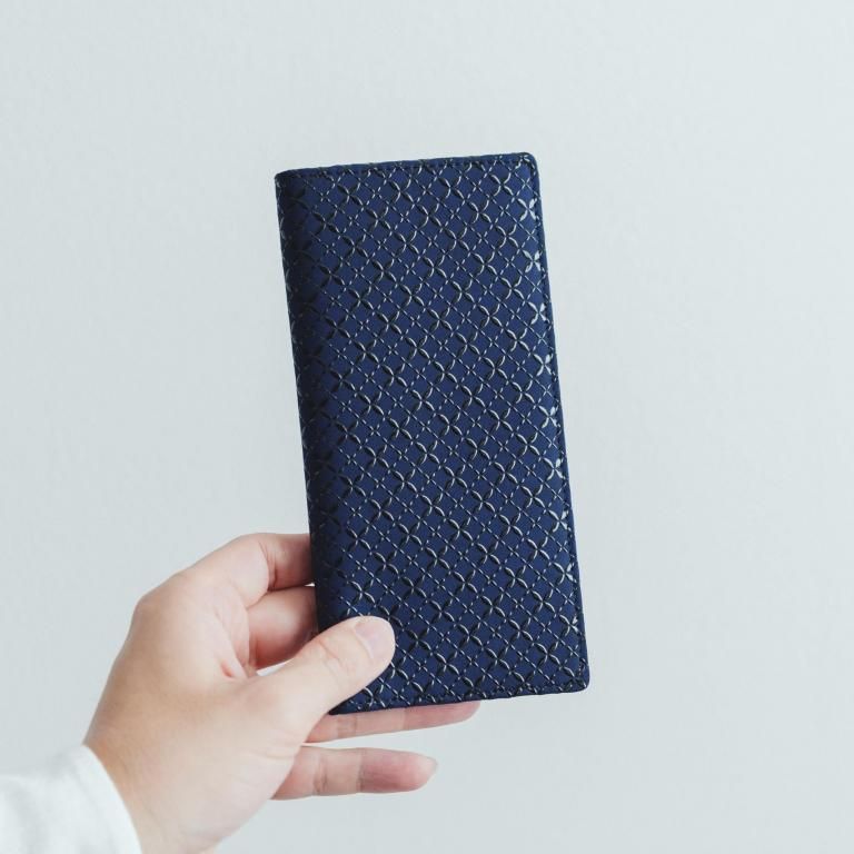 上漆模様の艶やかな光沢と、印伝ならではの柔らかな風合いを活かしたカードケース。