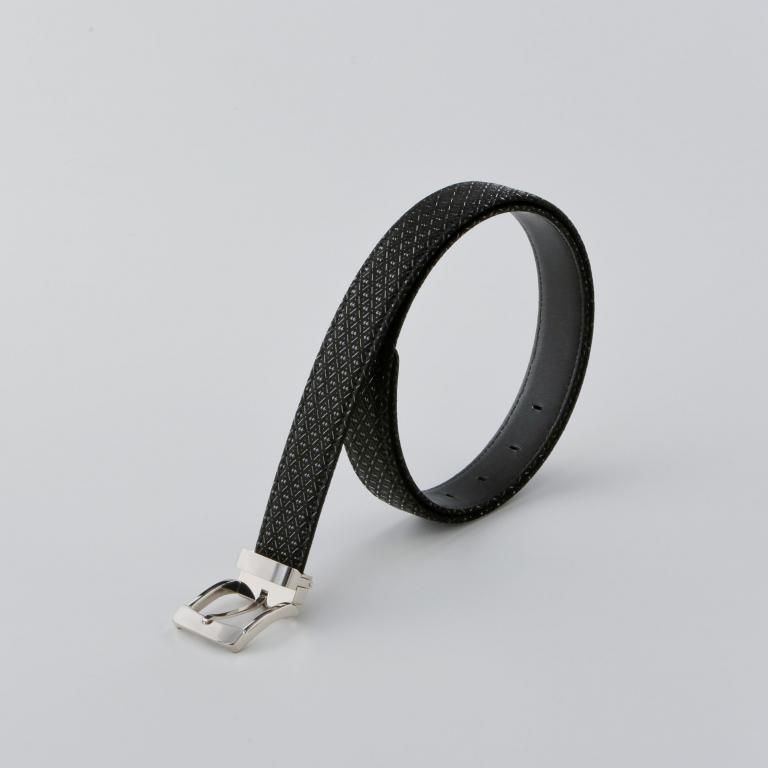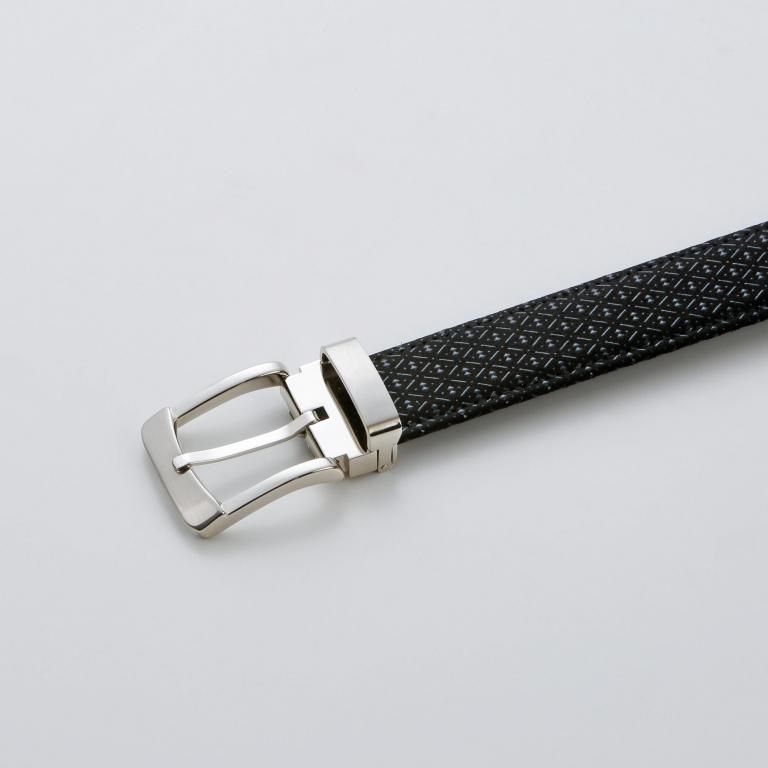ピンを穴に通して固定するピンバックルタイプ。スーツにもカジュアルテイストにも、幅広いコーディネートに合わせることができます。