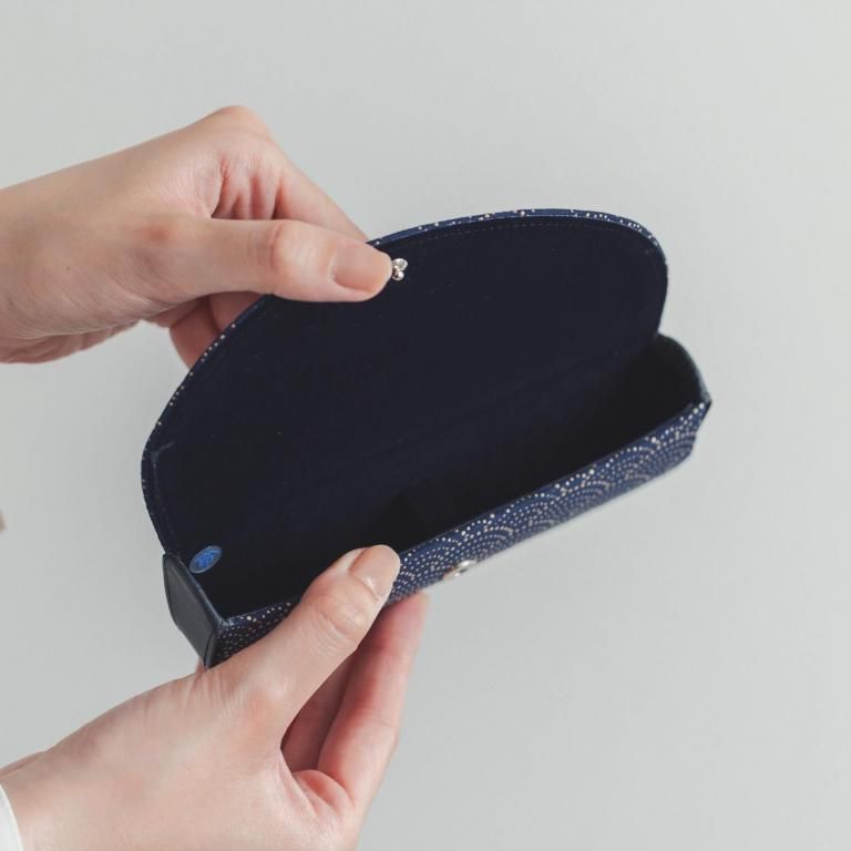 内側はメガネの鼻当て部分に沿うように突起をつけ、ケースの中で大きく動くことなくメガネを守ります。