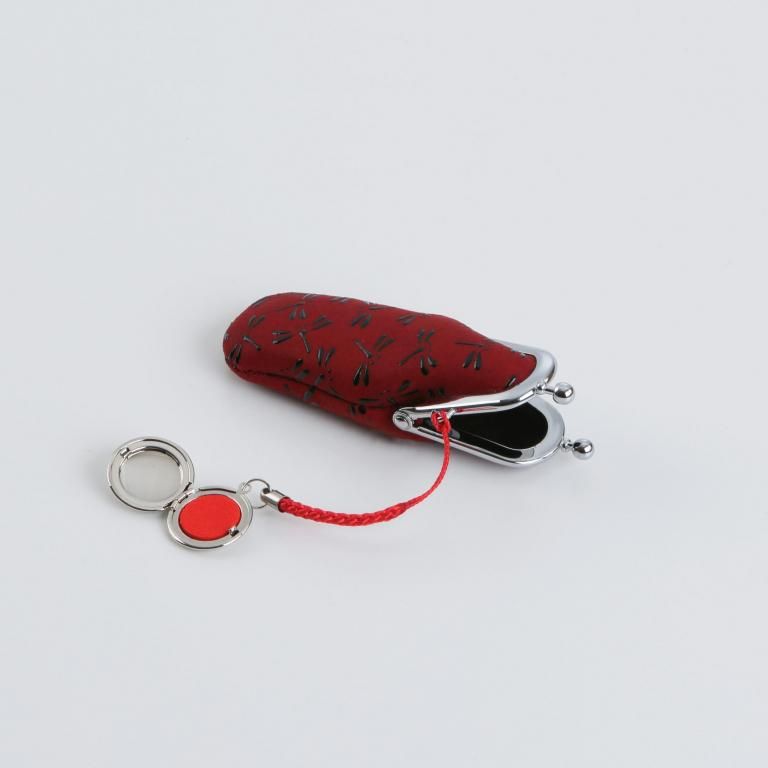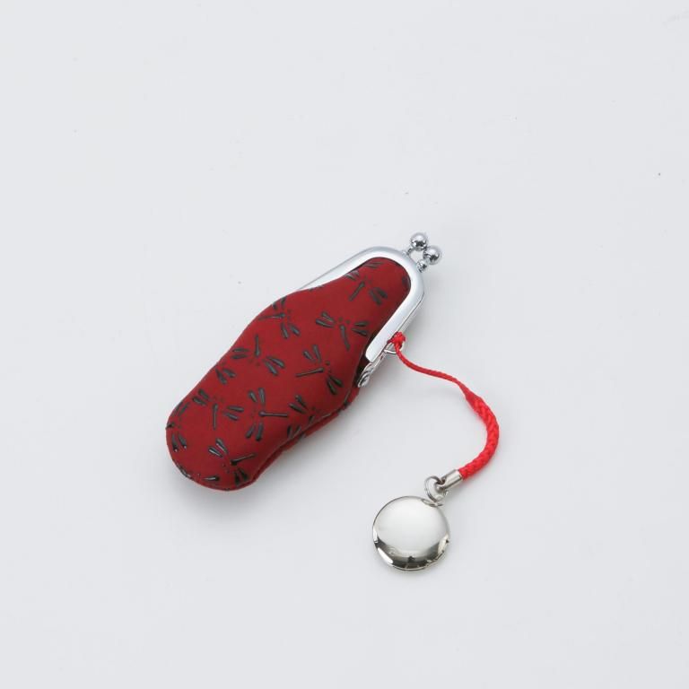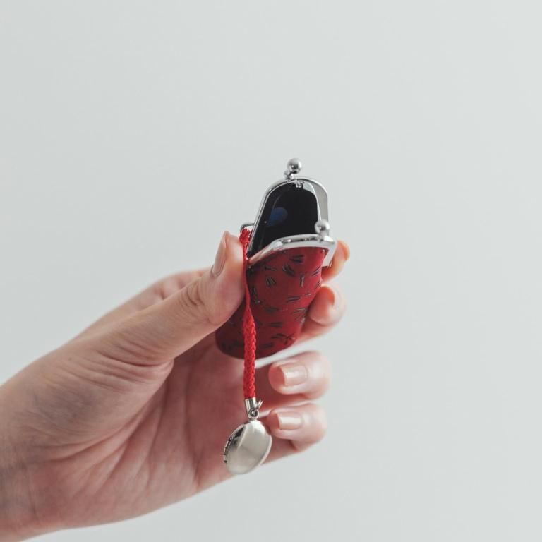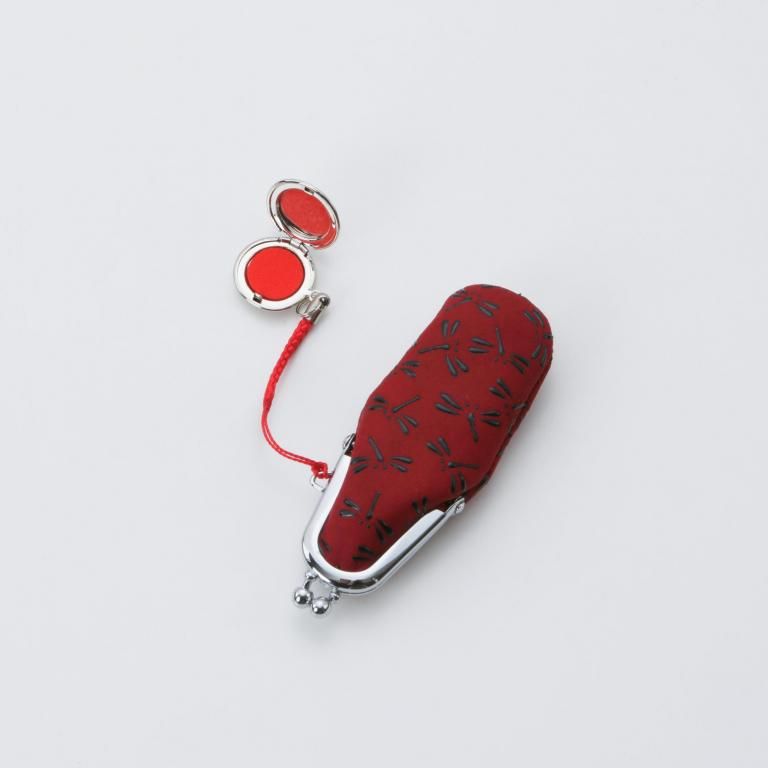“ぱっくり”大きく開く口金タイプ。付属する朱肉は紐で結ばれています。