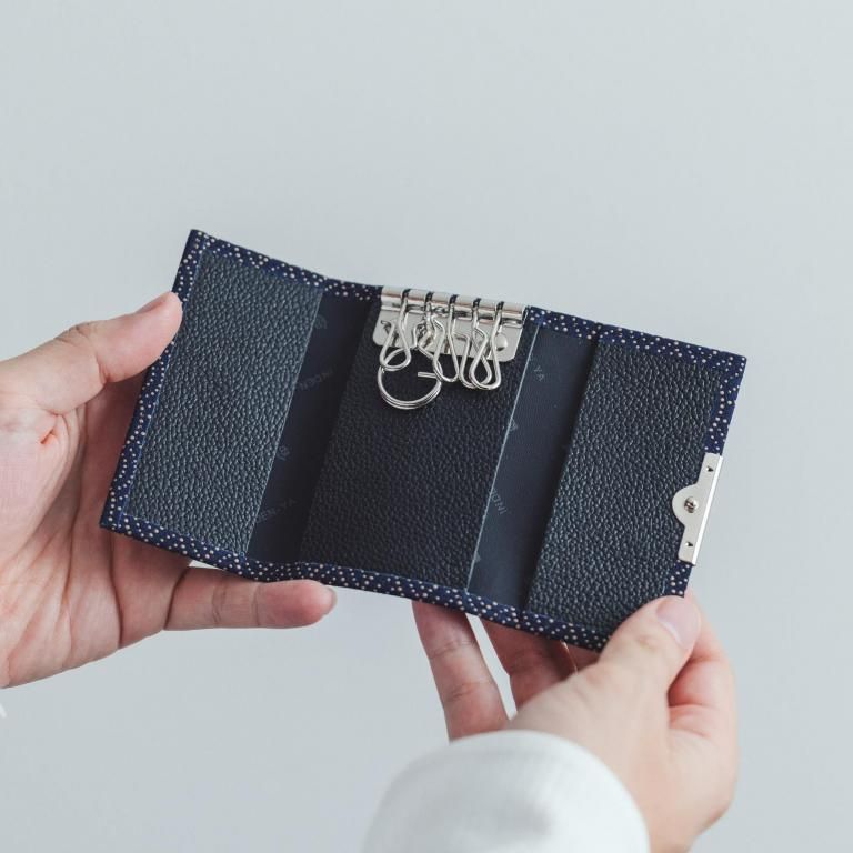5つのキーホルダーを手触りの良い印伝で包んだキーケースです。