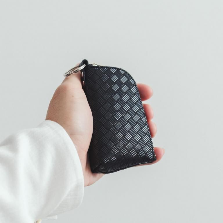 手のひらにすっぽりと馴染む絶妙な形のキーケースは、車の電子キーも丁度良く収まるサイズです。