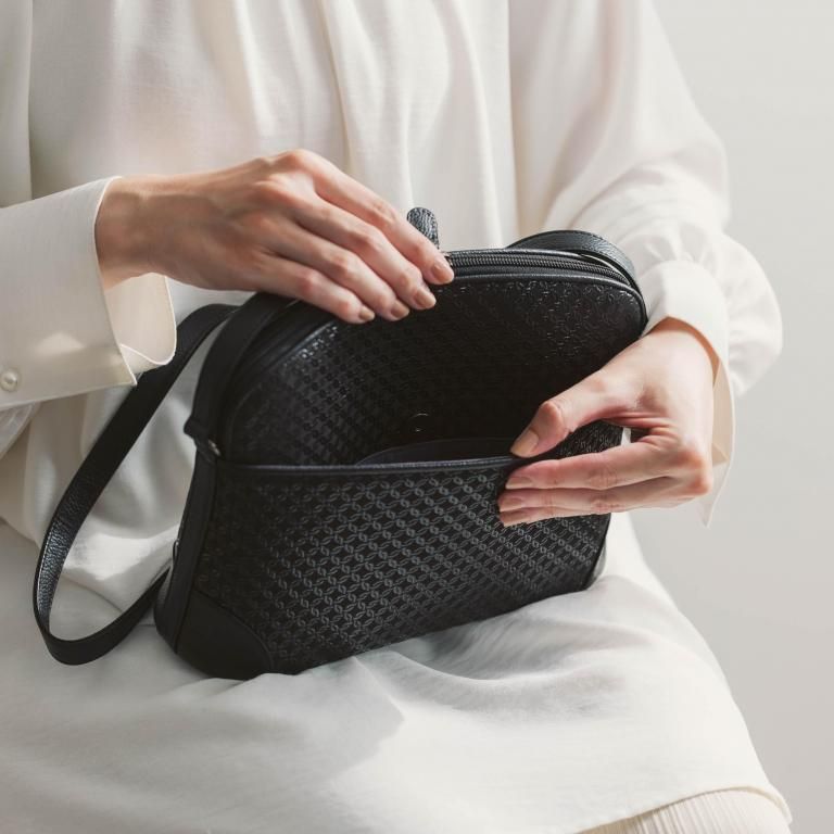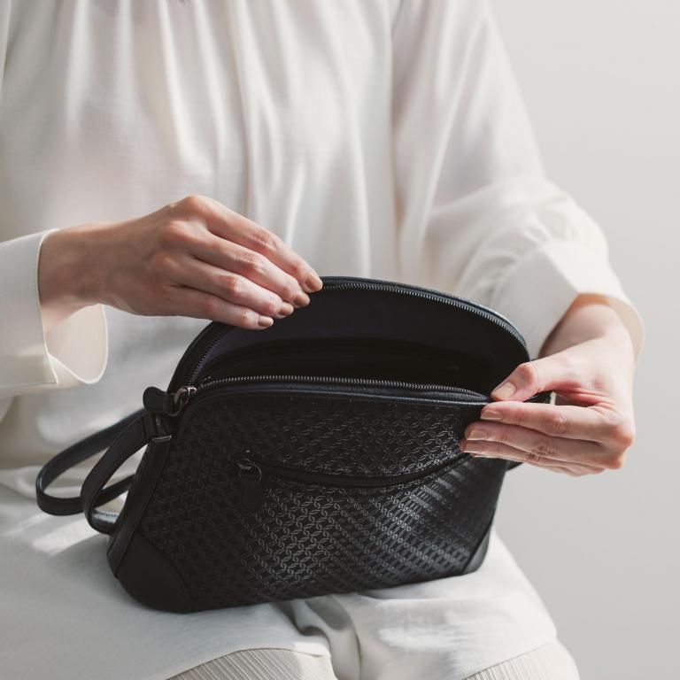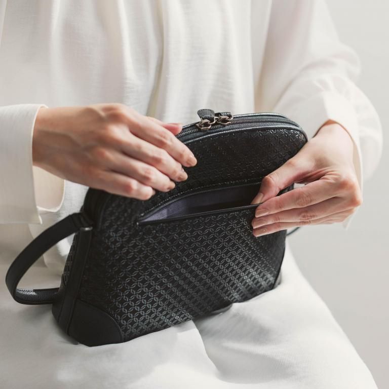 曲線的なディテールデザインに、機能性をコンパクトに集約した印傳屋ロングセラーポシェット。
