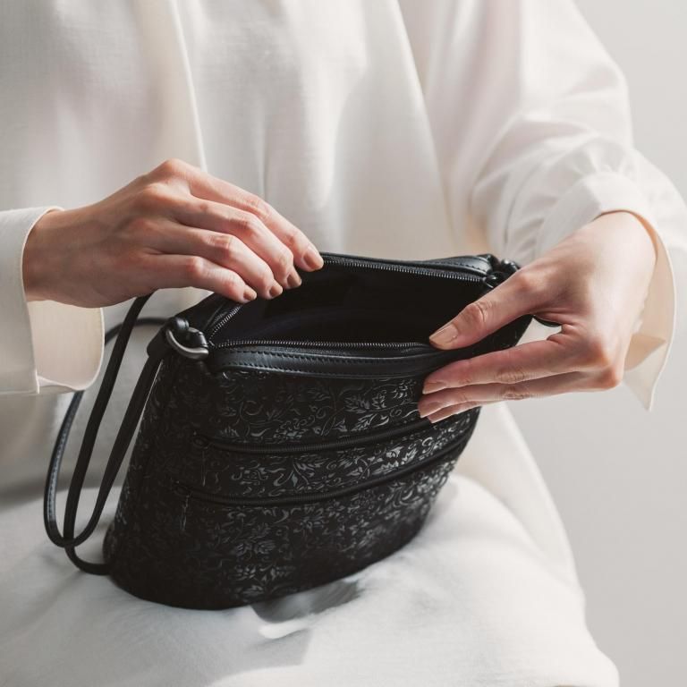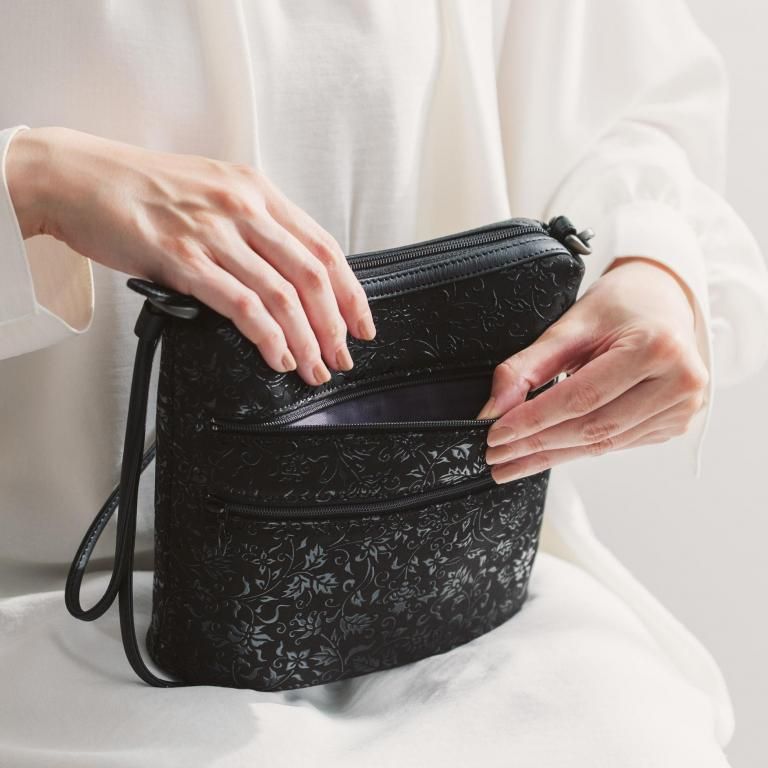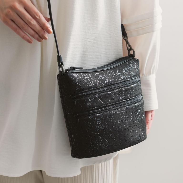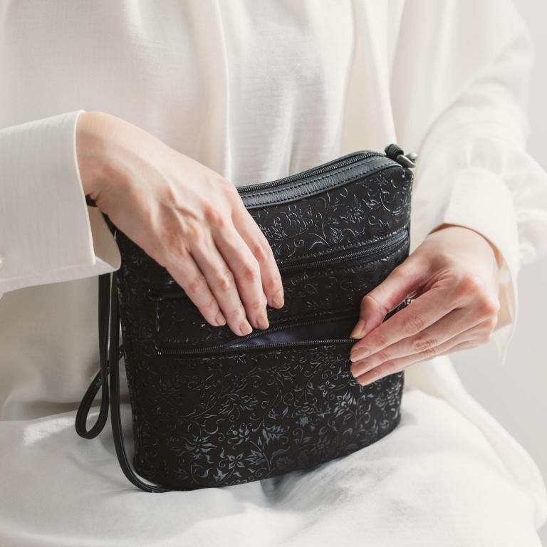 シックで艶やかな漆模様のアクセントが映える定番ポシェット。