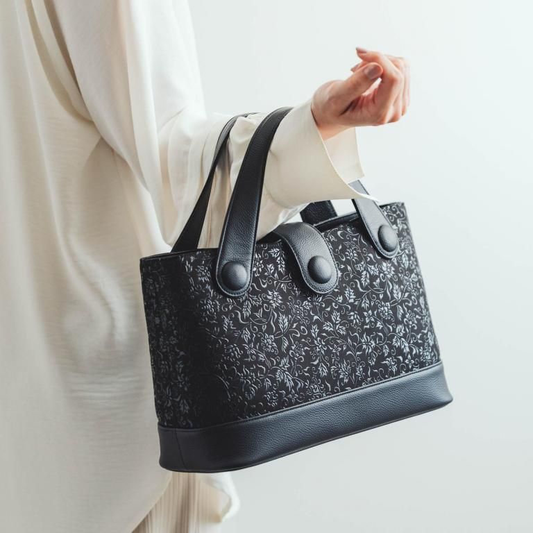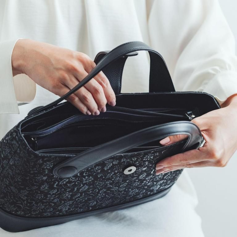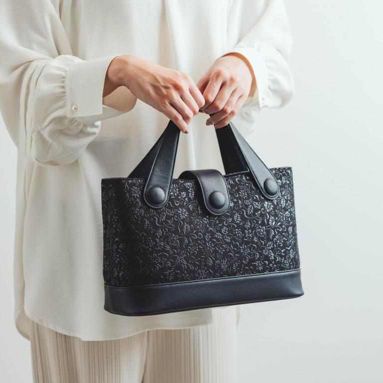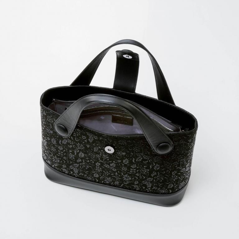 印伝に可愛らしく牛革を取り合わせたロングセラーのハンドバッグです。