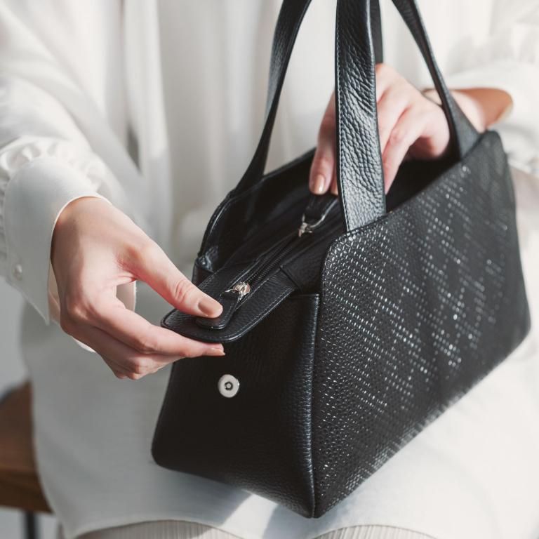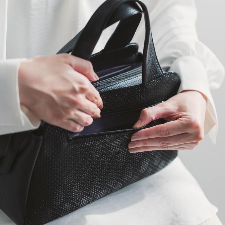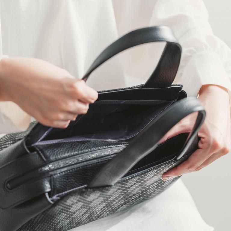 よそ行きの和装や洋装にも艶やかな漆模様が調和するハンドバッグです。
