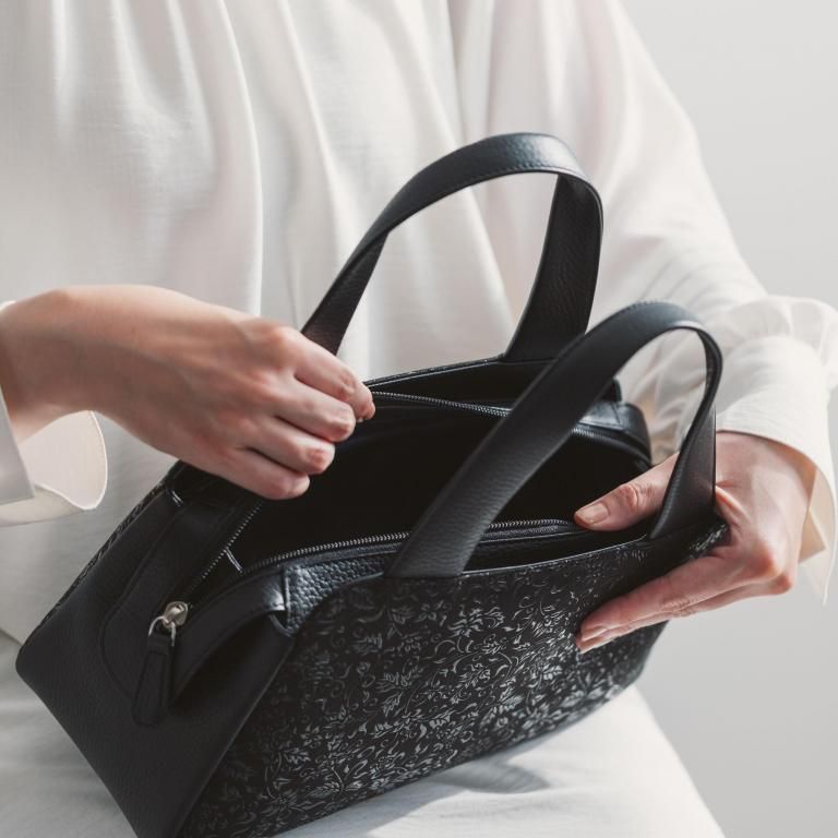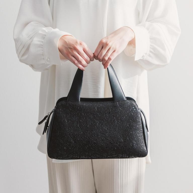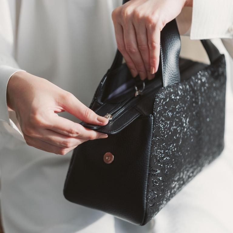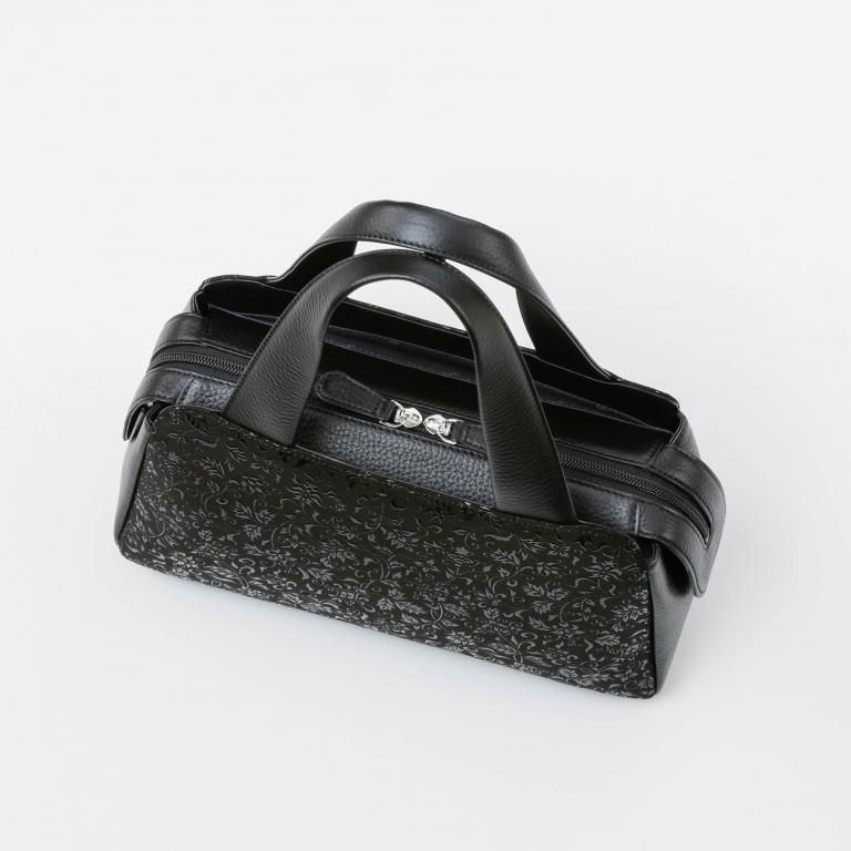 よそ行きの和装や洋装にも艶やかな漆模様が調和するハンドバッグです。