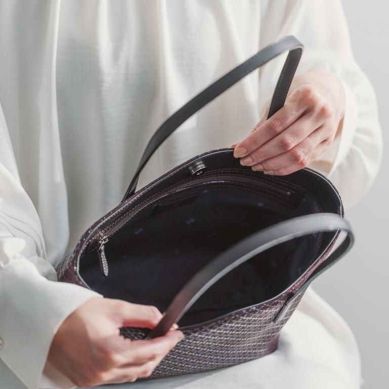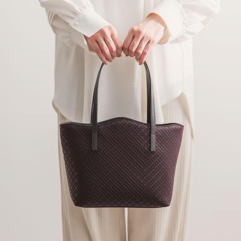 手に提げても、肩に掛けても優しく馴染む印伝ならではの軽さと質感をお愉しみください。